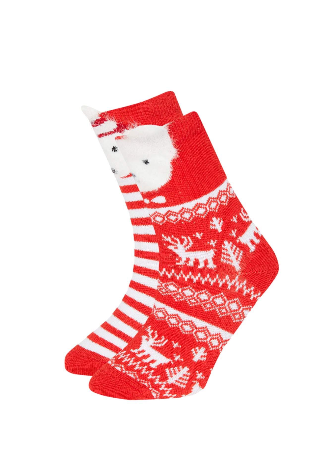 DeFacto Kız Çocuk Yılbaşı Temalı 2'li Pamuklu Uzun Çorap