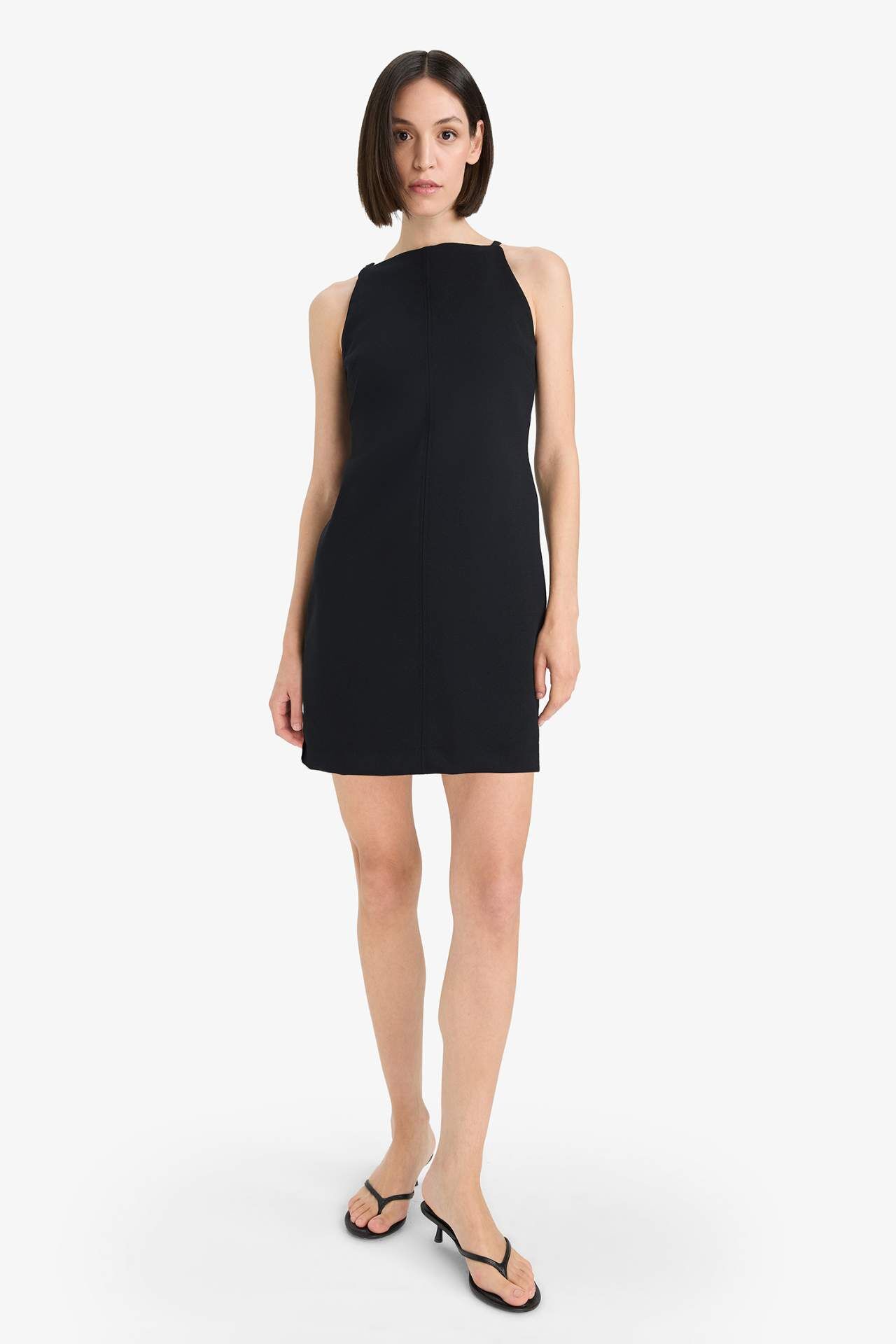 Yetişkin kadınlar için yaz aylarında tercih edebileceğiniz siyah basic elbise. Kolsuz ve şık tasarımıyla her zaman şıklığınızı ön plana çıkaracak. Gardırobunuzun vazgeçilmez parçası olmaya aday! Poliester 100%,Poliester 100%,Poliester 100%,Poliester 100%,Poliester 100%,Poliester 100%,Poliester 100% Manken Bedeni: Göğüs: 83 Boy: 1,81 Basen: 90 Bel: 58