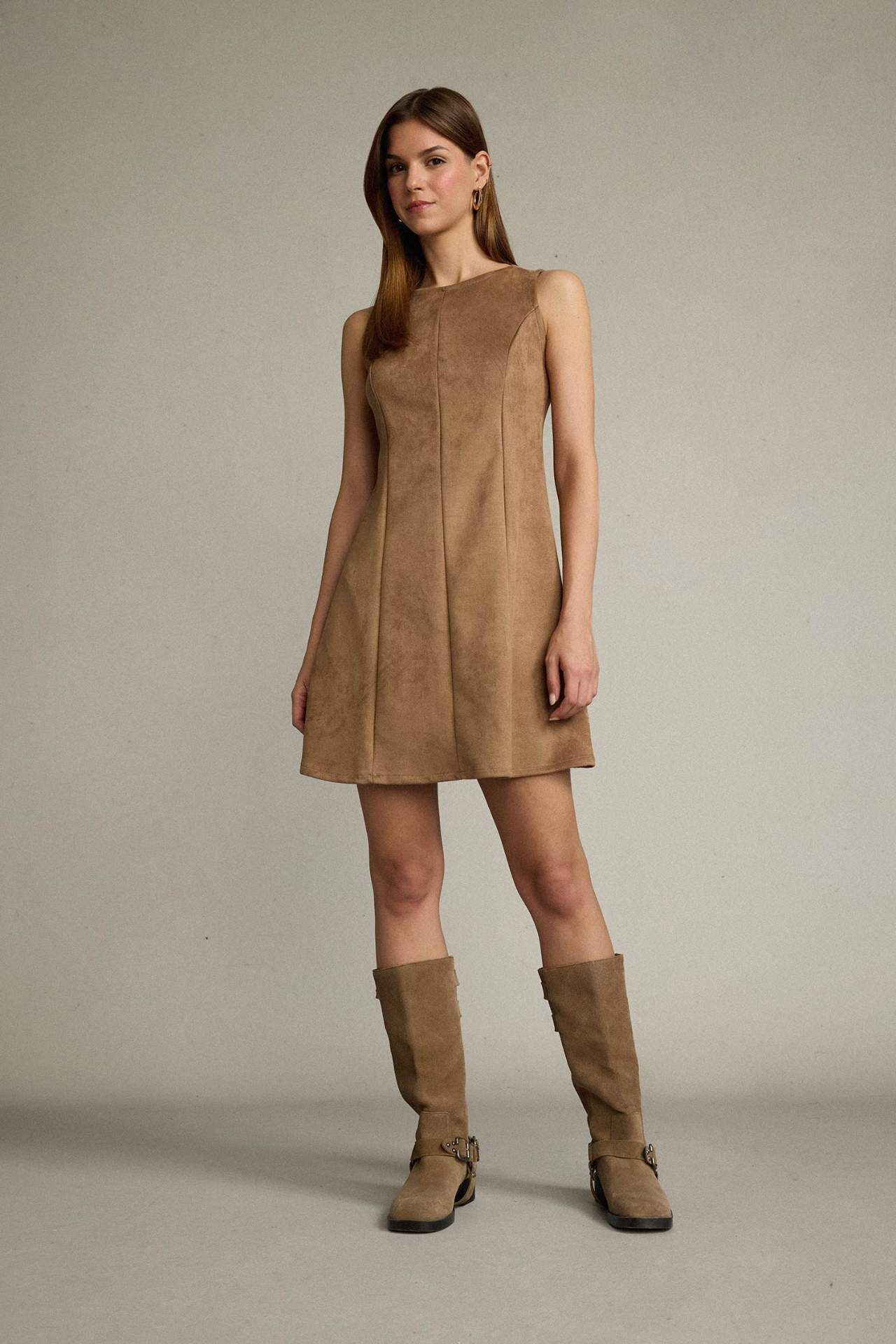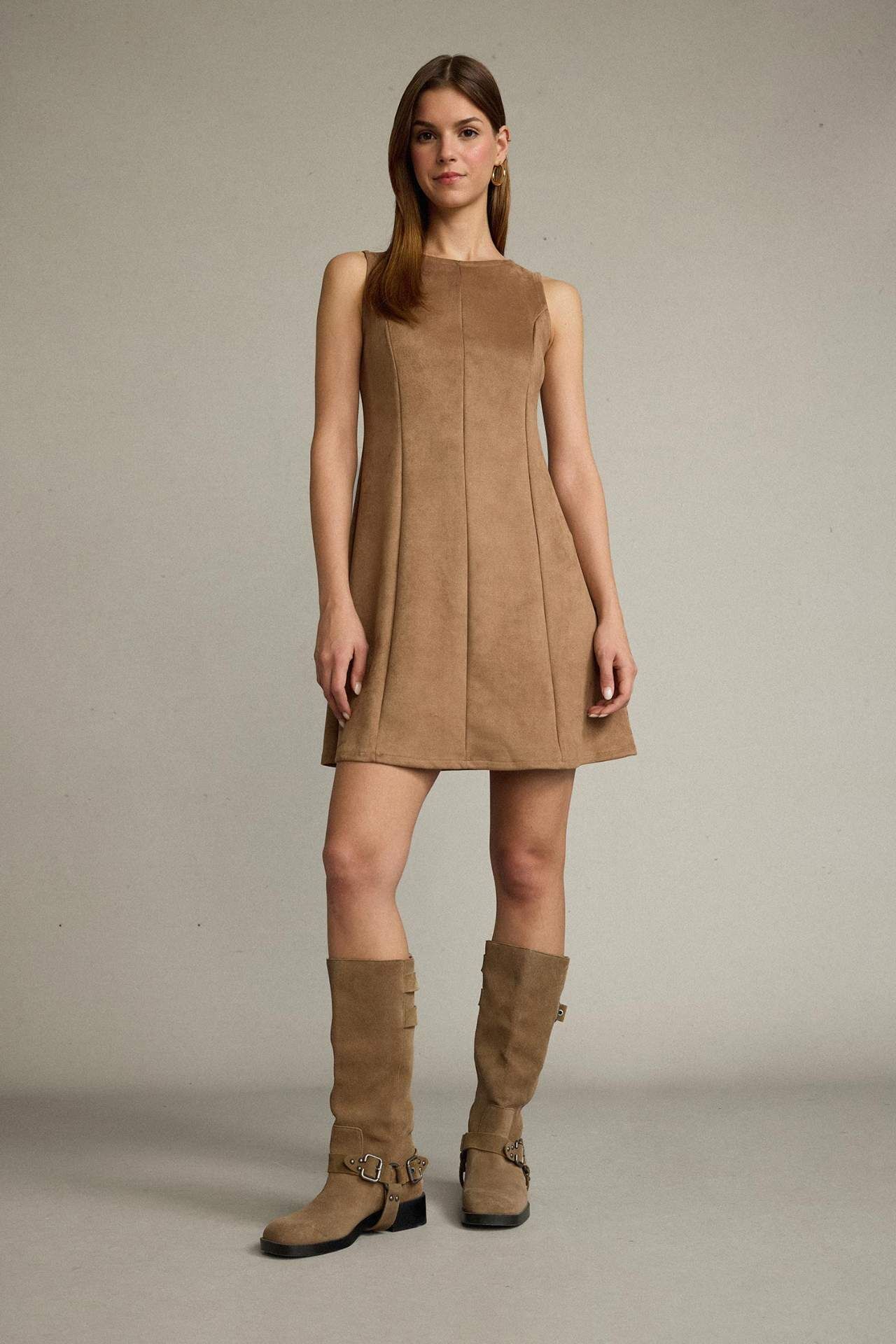 Kolsuz Süet Mini Elbise
