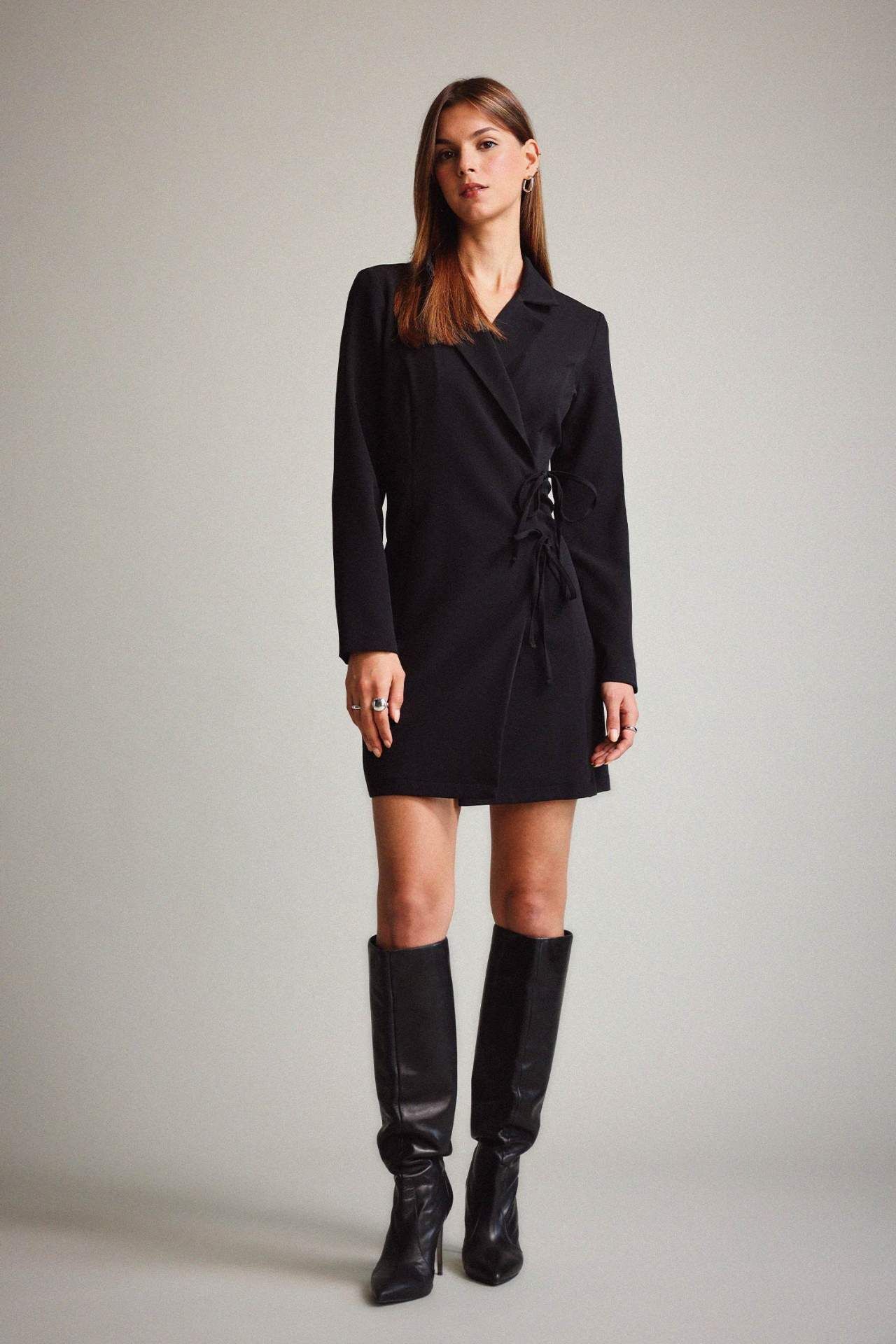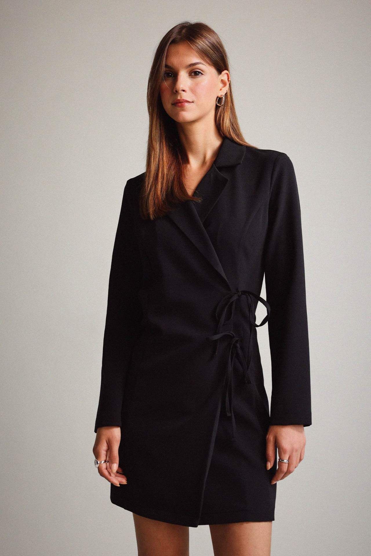 Krep Uzun Kollu Mini Elbise