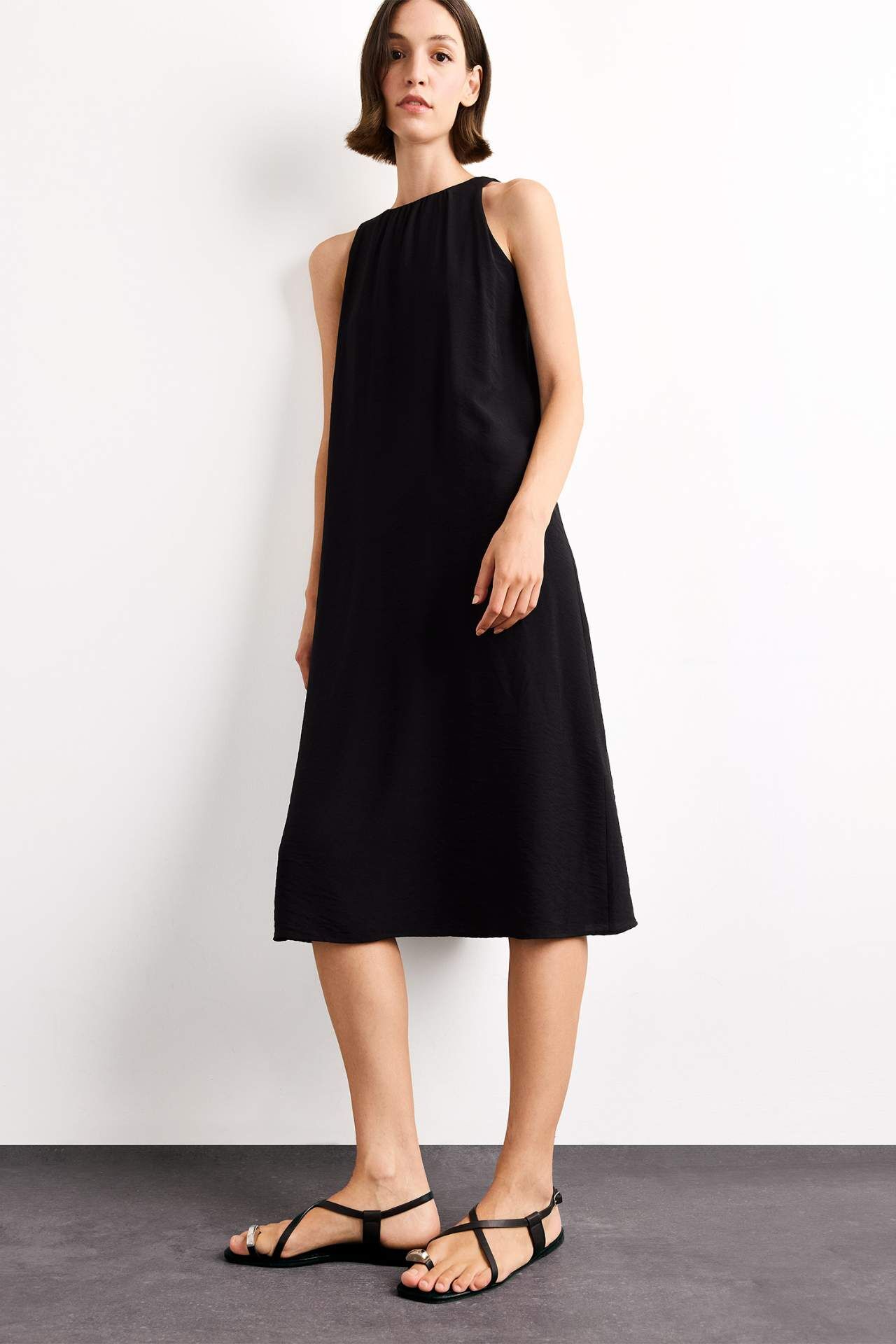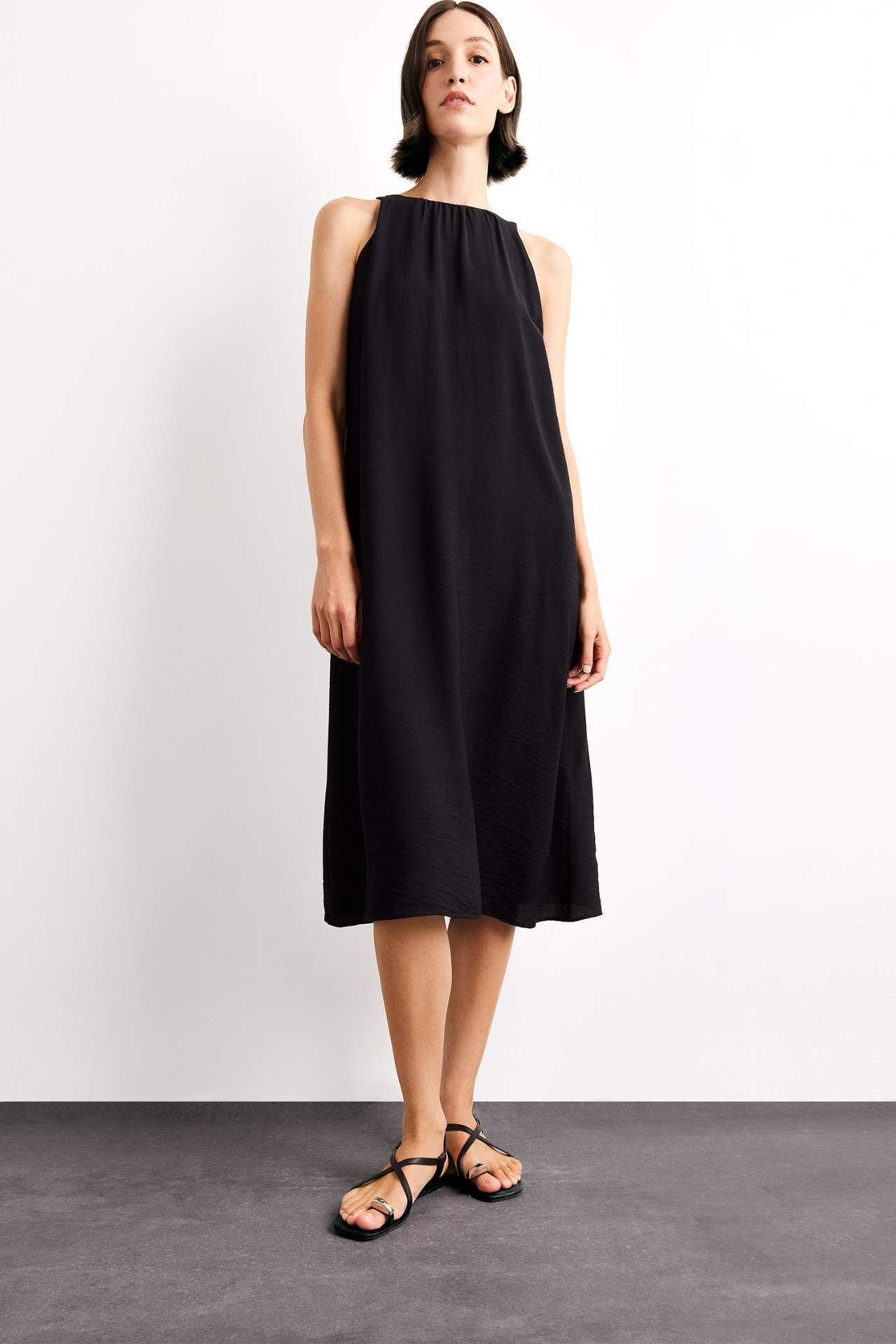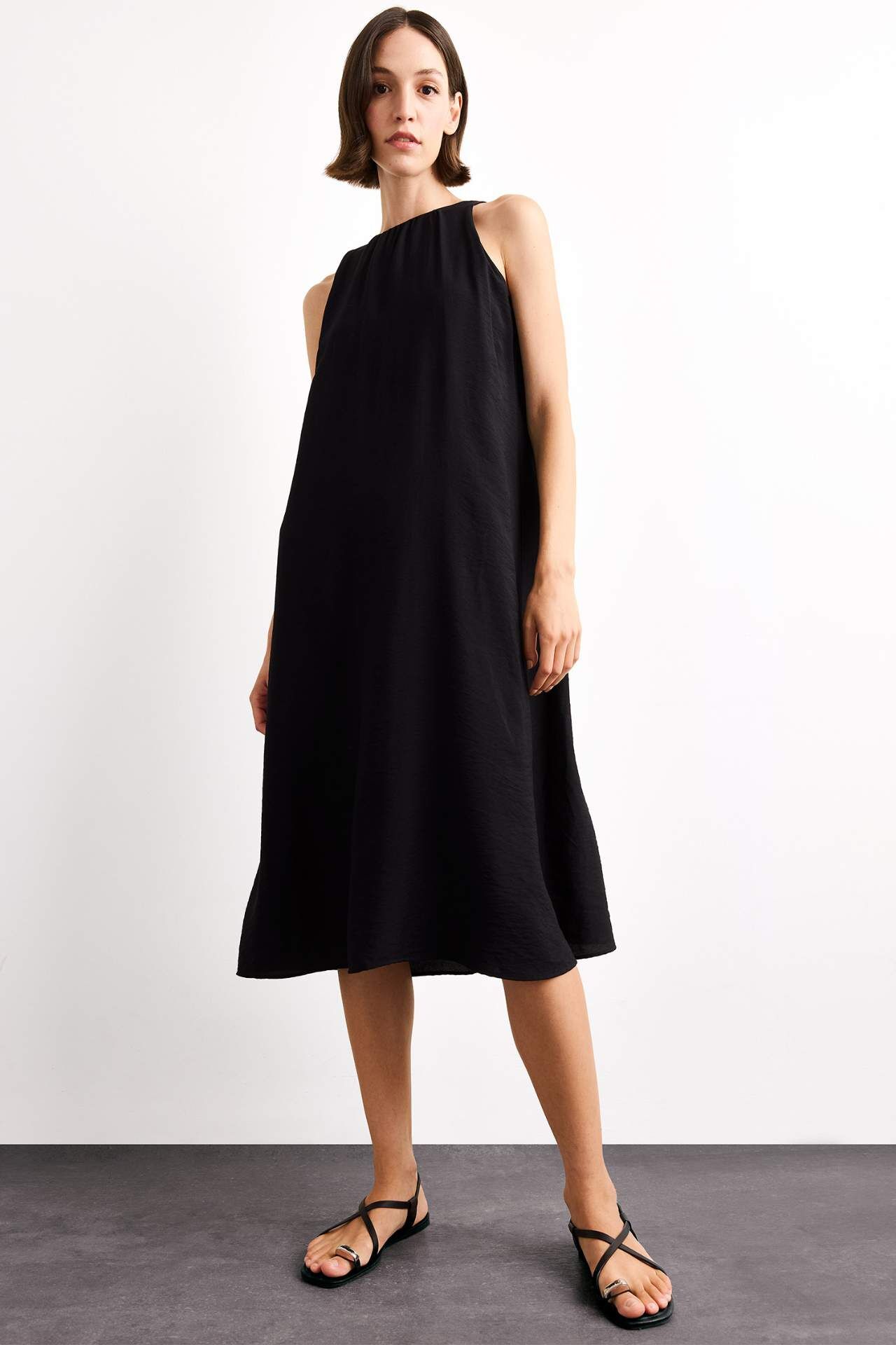 Krinkıl Kumaş Kolsuz Midi Elbise