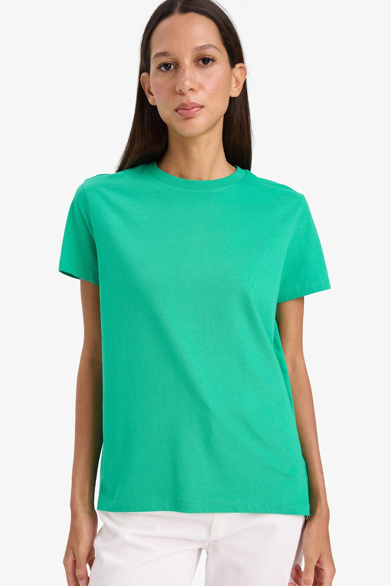 Long Fit Bisiklet Yaka Basic Düz Penye Kısa Kollu Tişört