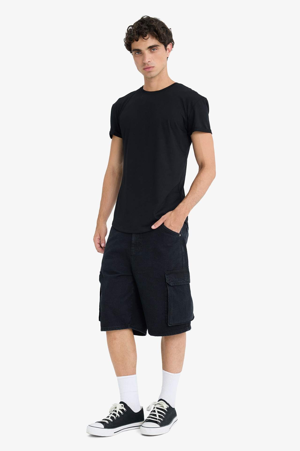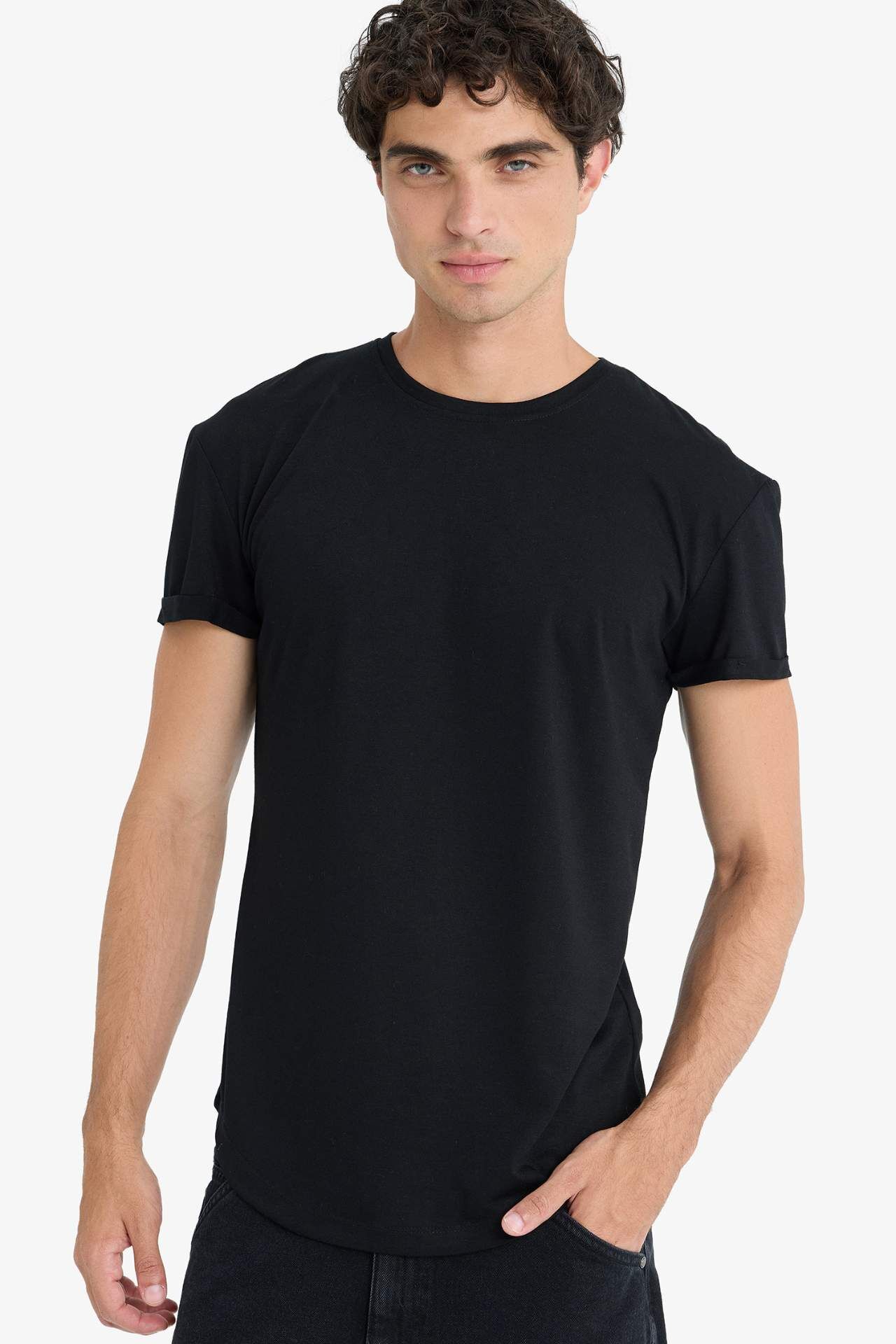 DeFacto Long Muscle Fit Bisiklet Yaka Basic Düz Kısa Kollu Tişört N2104AZ25AUBK81