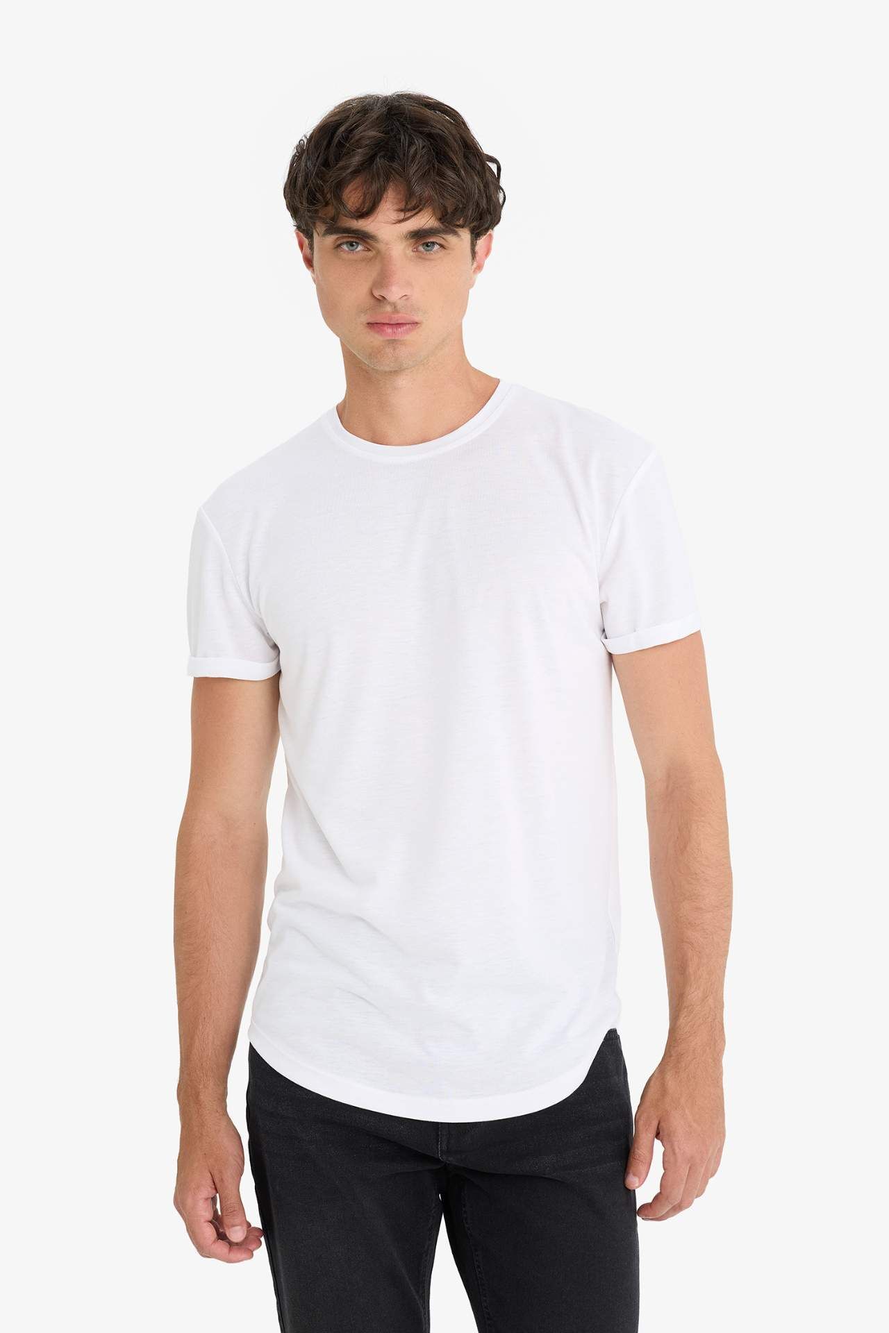 DeFacto Long Muscle Fit Bisiklet Yaka Basic Düz Kısa Kollu Tişört N2104AZ25AUWT34