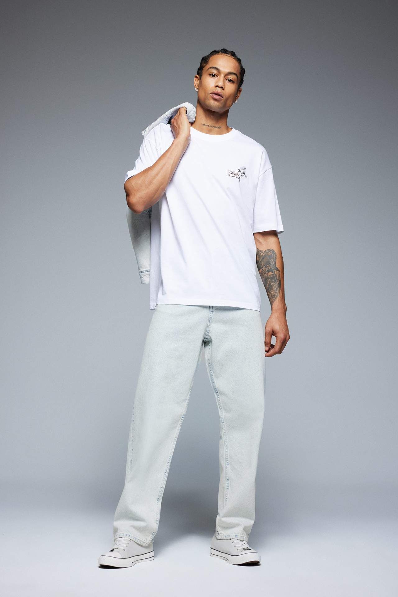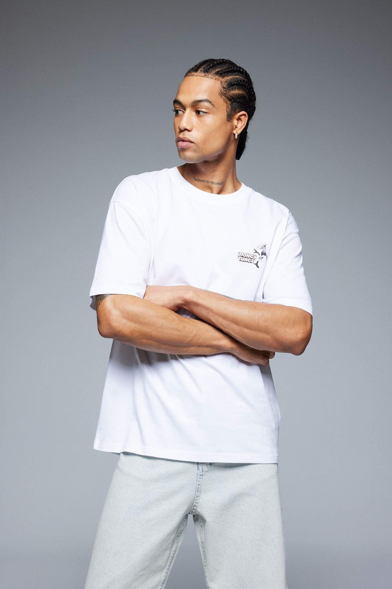 Looney Tunes karakterleriyle eğlenceli bir stil! Boxy fit tasarımı ve bisiklet yaka kesimiyle rahat bir kullanım sunan bu baskılı kısa kollu tişört, şıklığı ve rahatlığı bir arada arayanlar için ideal. Eğlenceli tasarımıyla her anı neşelendirir! Pamuk 100%,Pamuk 100%,Pamuk 100%,Pamuk 100%,Pamuk 100%,Pamuk 100%,Pamuk 100%,Pamuk 100% Manken Bedeni: Göğüs: 90 Boy: 1,83 Basen: 93 Bel: 74