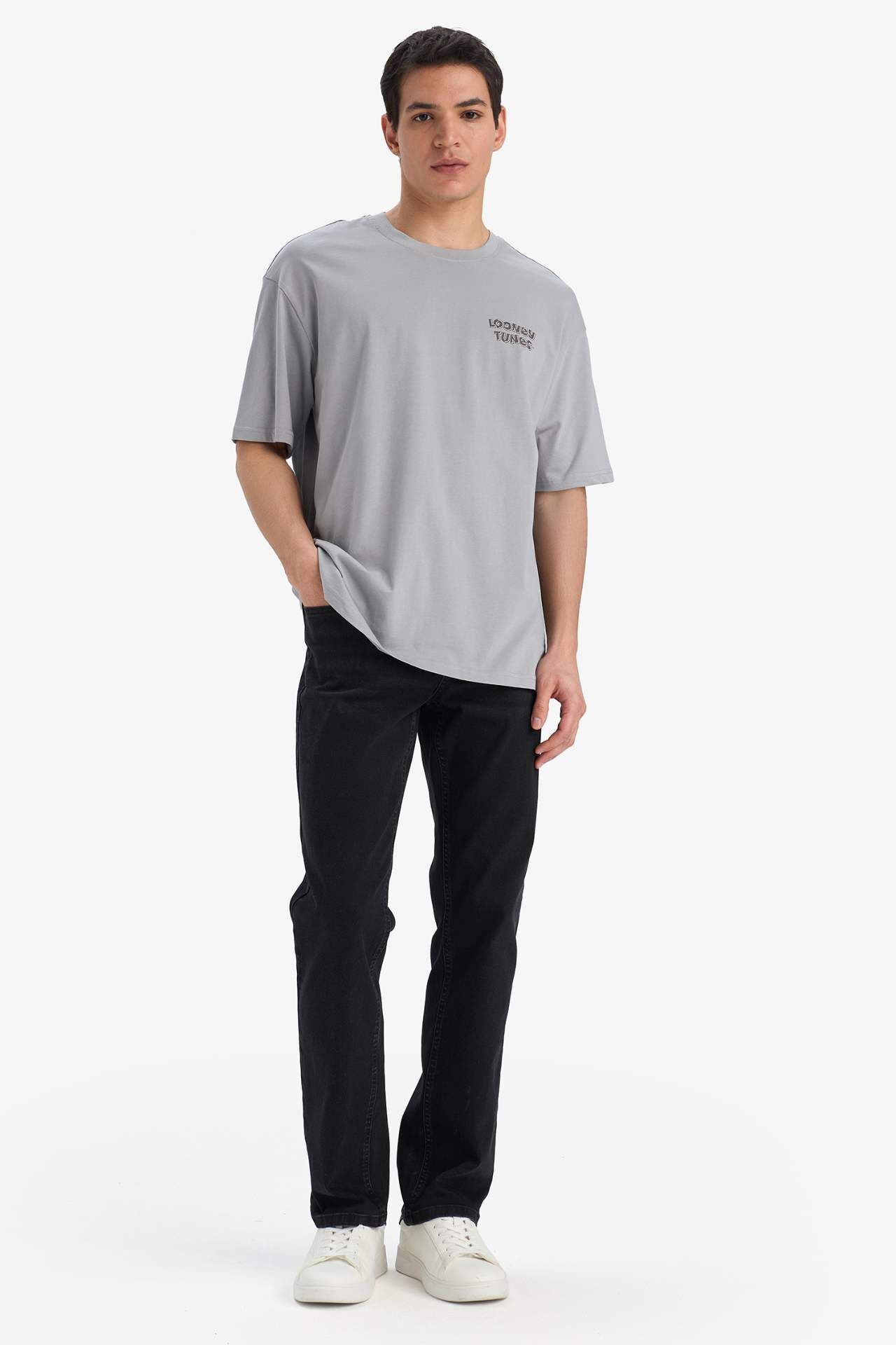 DeFacto Looney Tunes Boxy Fit Bisiklet Yaka Sırt Baskılı Kısa Kollu Tişört E9293AX25AUGR454