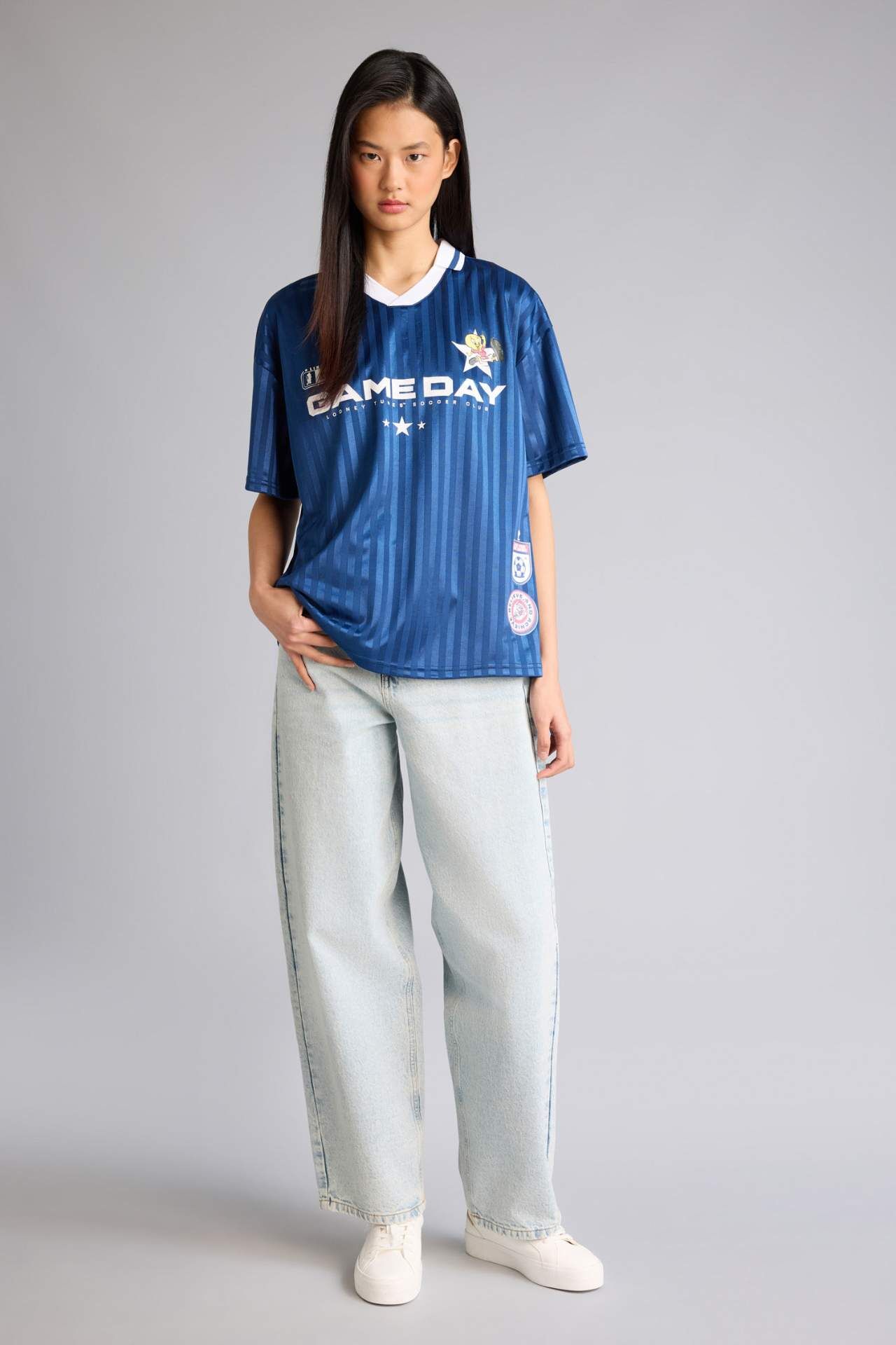 DeFacto Looney Tunes Oversıze Polo Yaka Baskılı Kısa Kollu Tişört