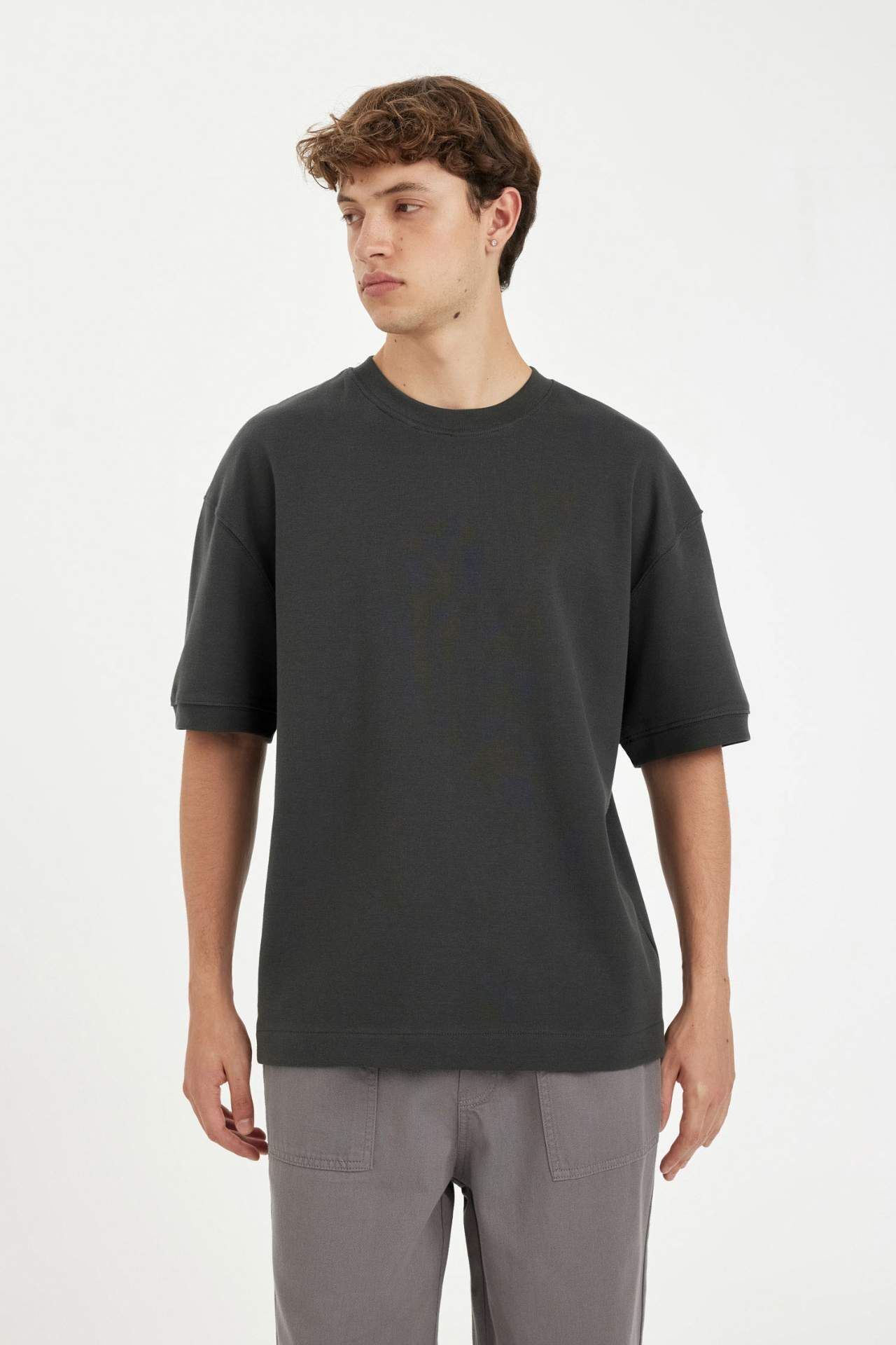 DeFacto Loose Fit Bisiklet Yaka Ağır Kumaş Kısa Kollu Tişört B4844AX24AUAR231