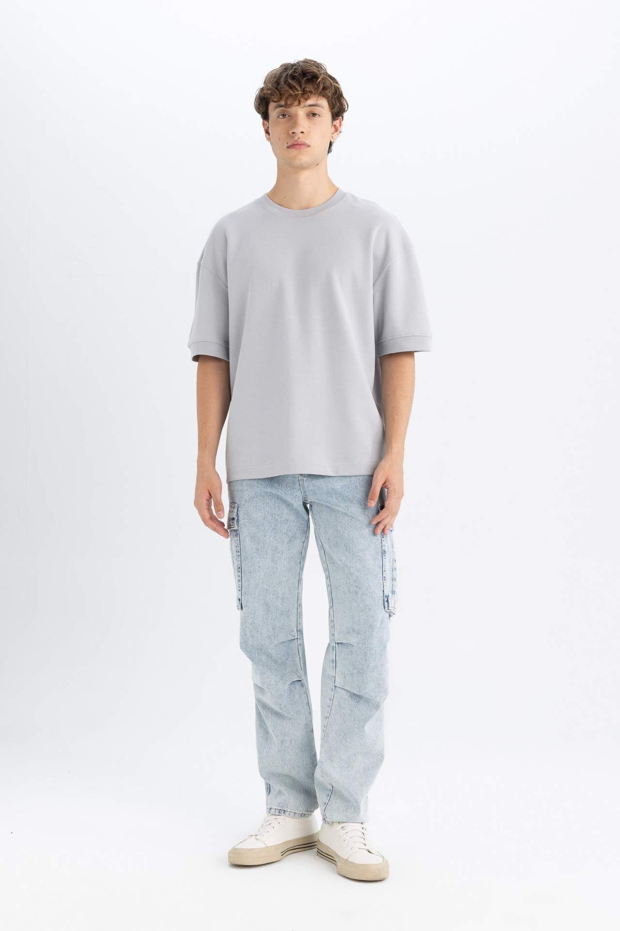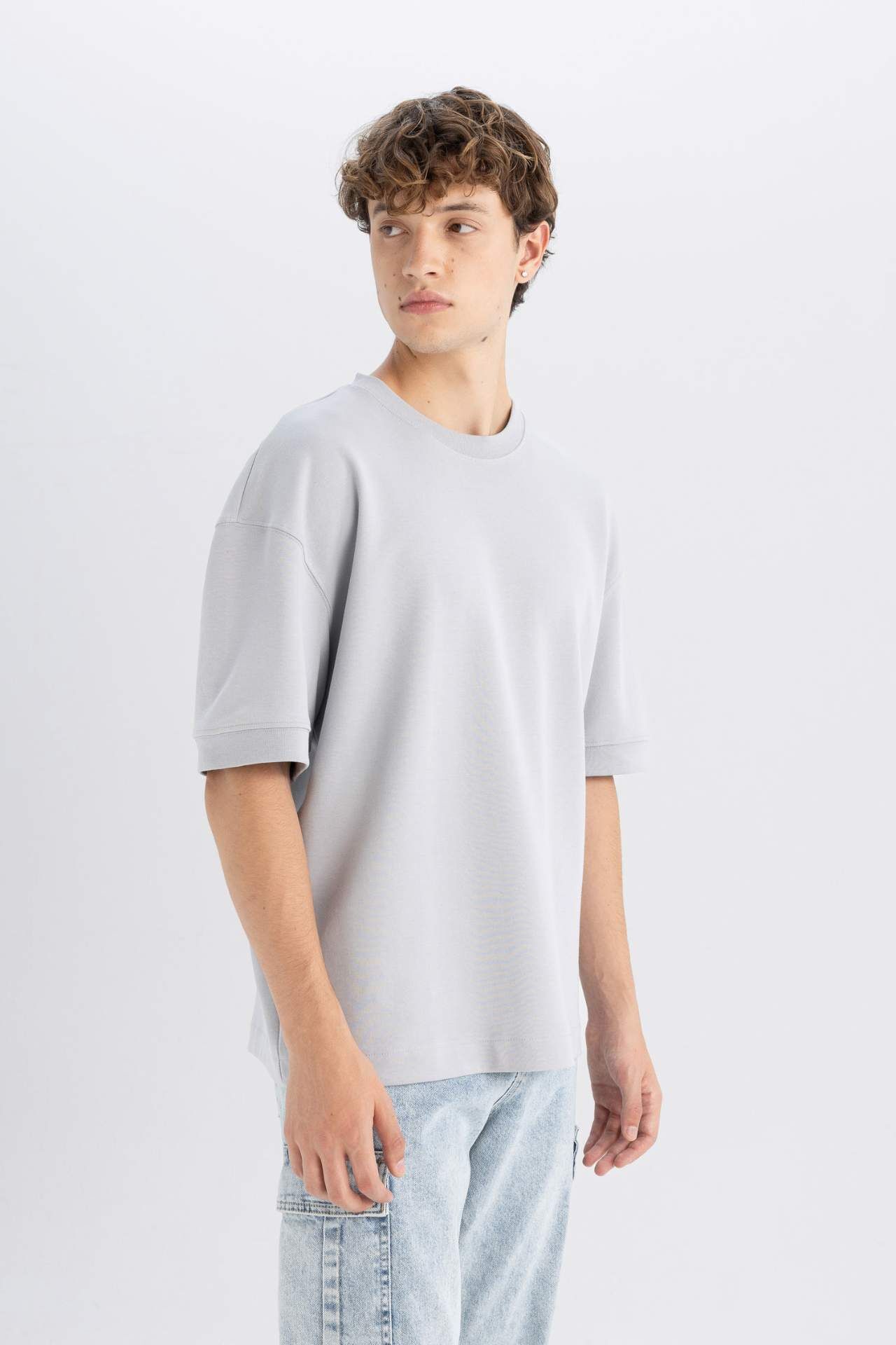 DeFacto Loose Fit Bisiklet Yaka Ağır Kumaş Kısa Kollu Tişört B4844AX24AUGR253