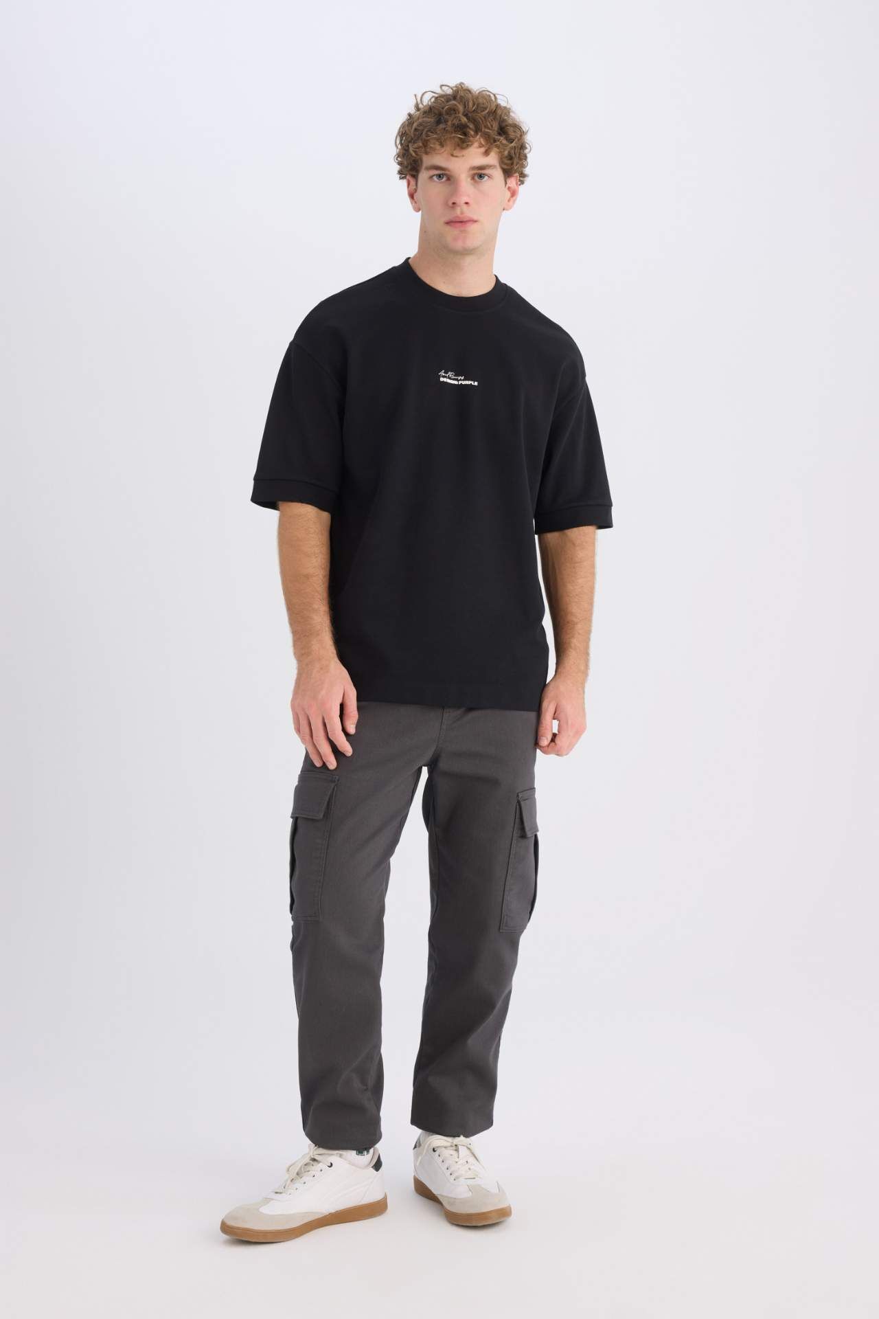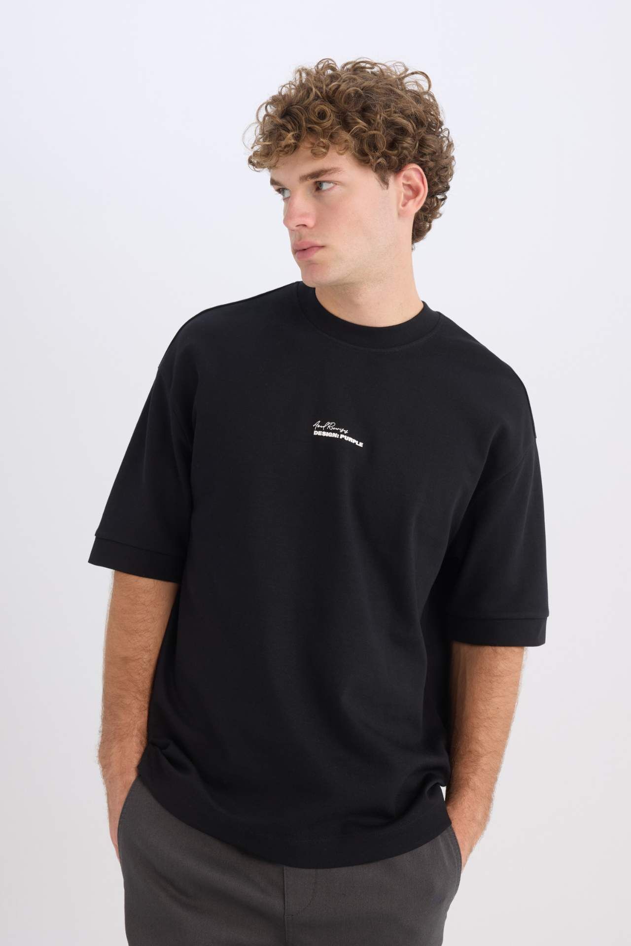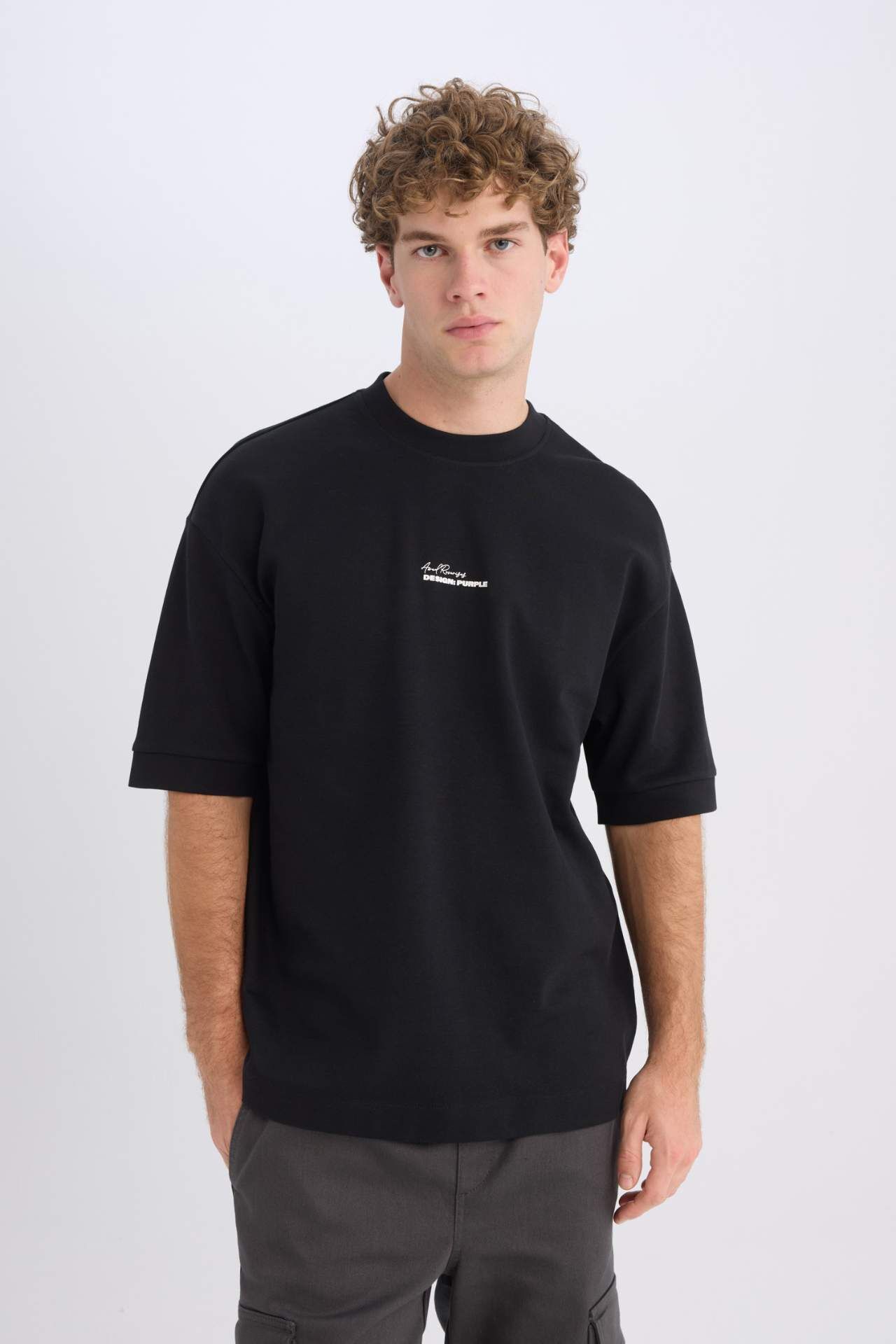 DeFacto Loose Fit Bisiklet Yaka Baskılı Ağır Kumaş Kısa Kollu Tişört D5496AX25SPBK81