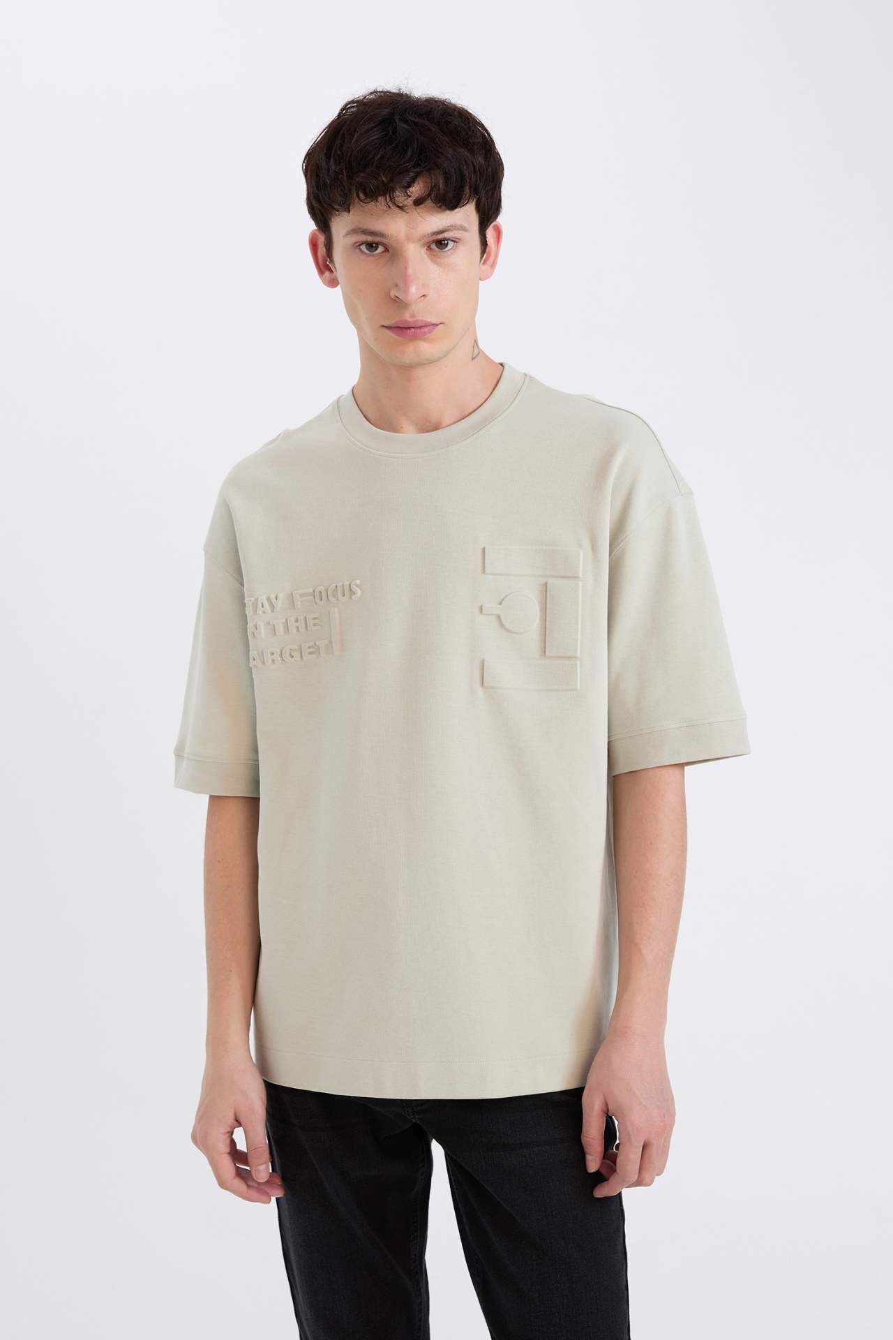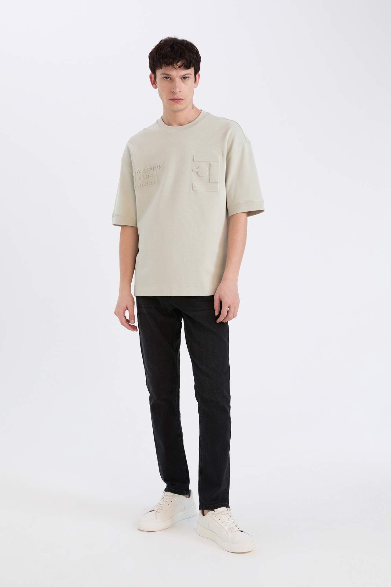 DeFacto Loose Fit Bisiklet Yaka Baskılı Kısa Kollu Ağır Kumaş Tişört D5557AX25SPKH494