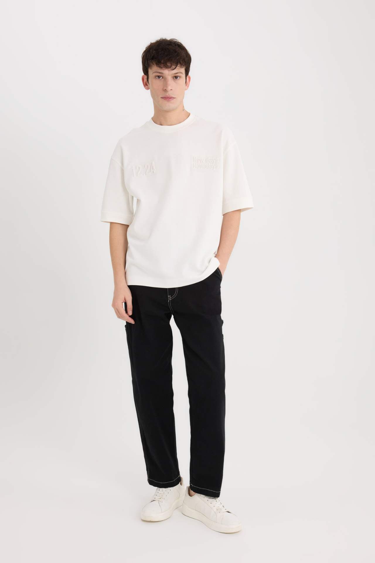 Loose fit bisiklet yaka baskılı kısa kollu tişört, rahat kesimi ve ağır kumaşıyla hem şık hem de konforlu bir seçenek sunar. Üzerindeki baskı, tişörte modern bir dokunuş katarken, dayanıklı kumaşı uzun ömürlü kullanım sağlar. Hem günlük hem de rahat şıklık arayanlar için ideal! Pamuk 79%,Poliester 21%,Pamuk 79%,Poliester 21%,Pamuk 79%,Poliester 21% Manken Bedeni: Göğüs: 90 Boy: 1,88 Basen: 91 Bel: 74