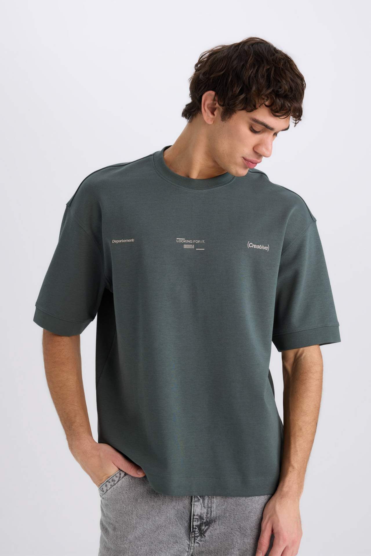 DeFacto Loose Fit Bisiklet Yaka Baskılı Kısa Kollu Ağır Kumaş Tişört E0575AX25SMGN498