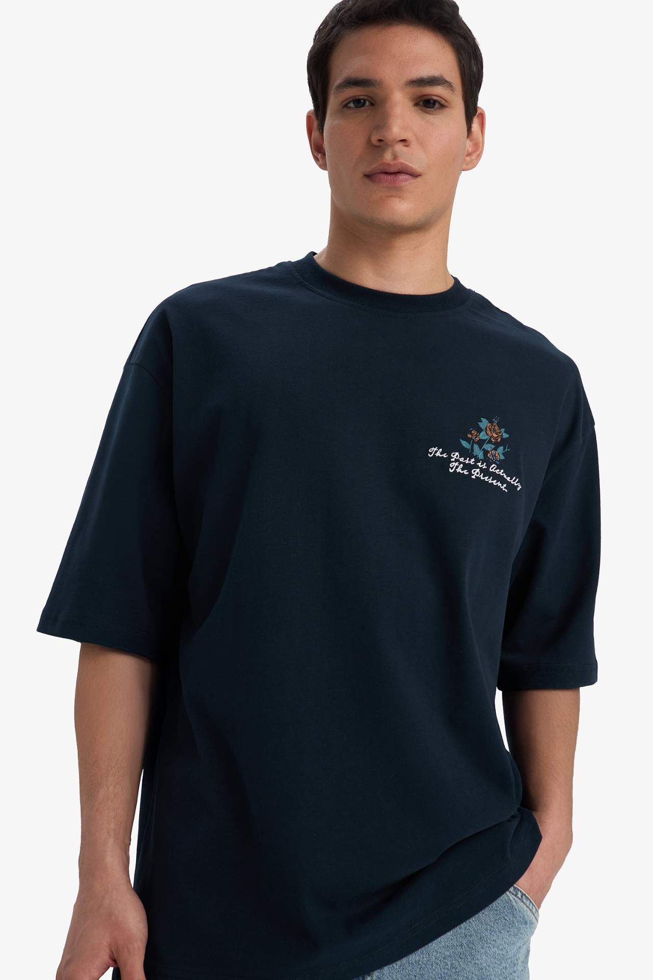 DeFacto Loose Fit Bisiklet Yaka Baskılı Kısa Kollu Tişört B4320AX25SMNV239