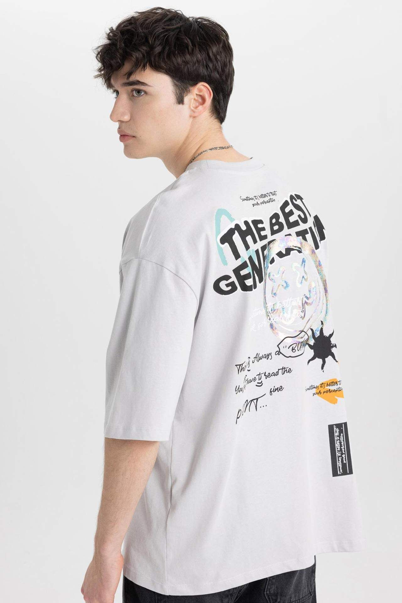 DeFacto Loose Fit Bisiklet Yaka Baskılı Tişört B8950AX24SMGR184
