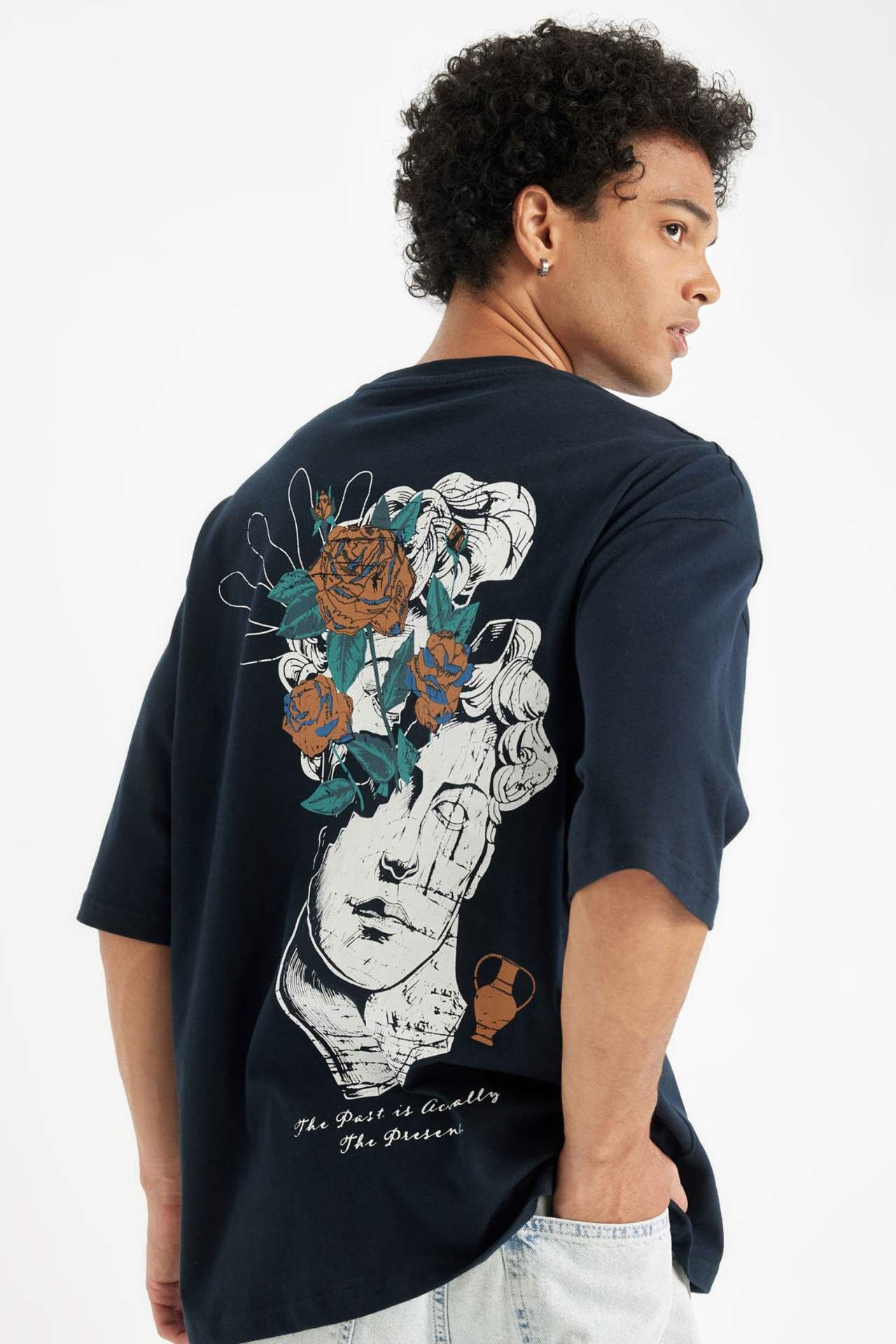 DeFactoFit Loose Fit Bisiklet Yaka Sırt Baskılı Kısa Kollu Tişört B4320AX24AUNV239
