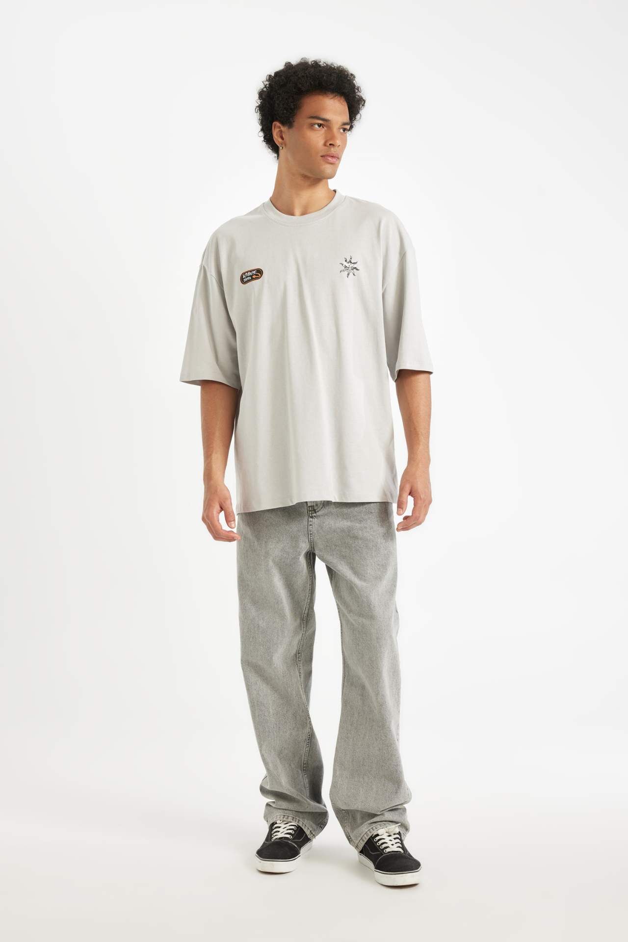 DeFacto Loose Fit Bisiklet Yaka Sırt Baskılı Kısa Kollu Tişört B8950AX24AUGR184