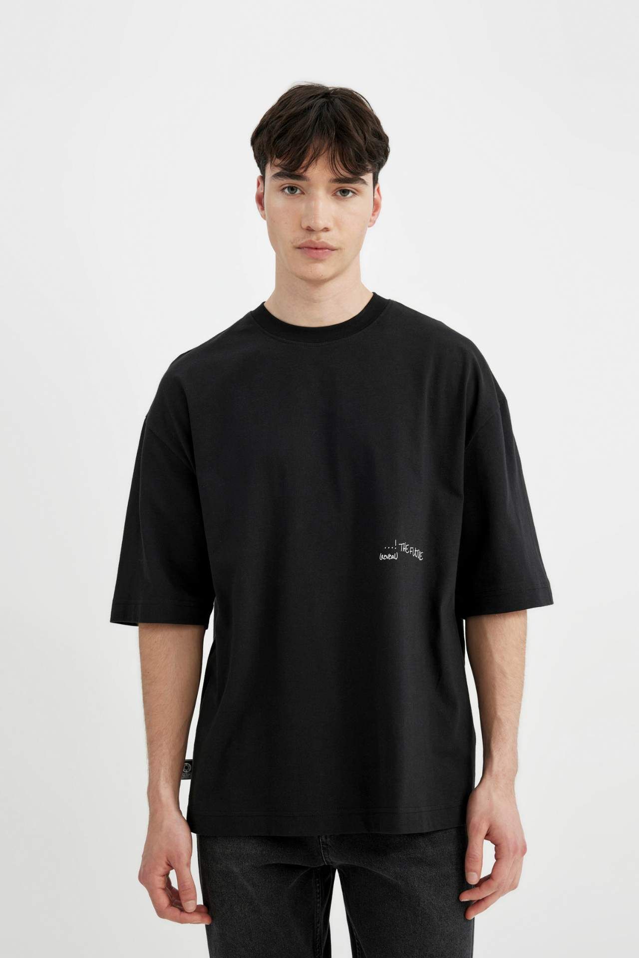 DeFacto DeFactoFit Loose Fit Bisiklet Yaka Sırt Baskılı Kısa Kollu Tişört C1868AX24SMBK81