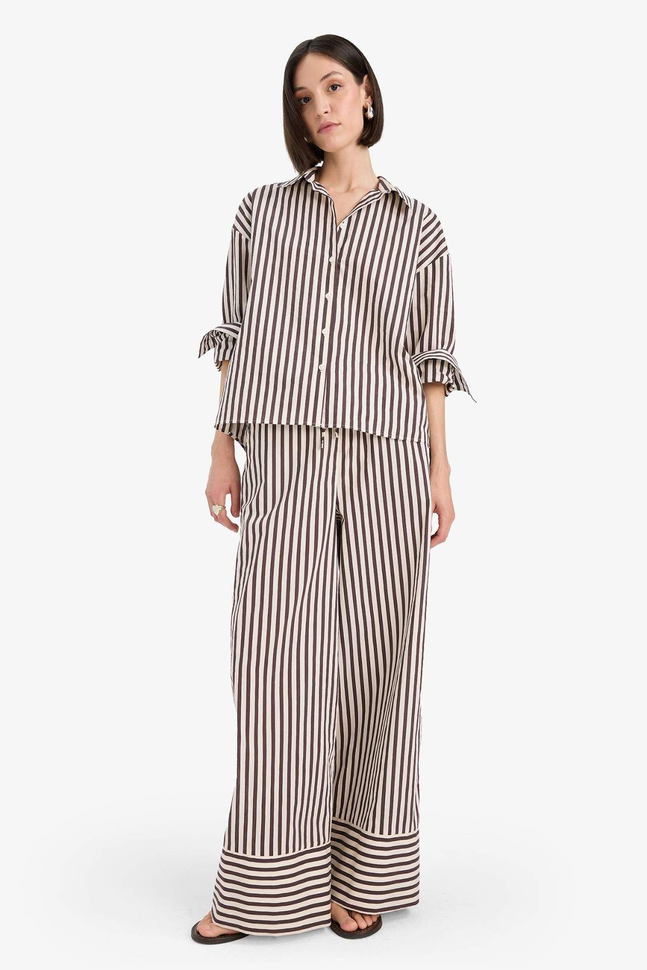 DeFacto Loose Fit Çizgili Poplin Uzun Kollu Gömlek F0403AX25SMBN390