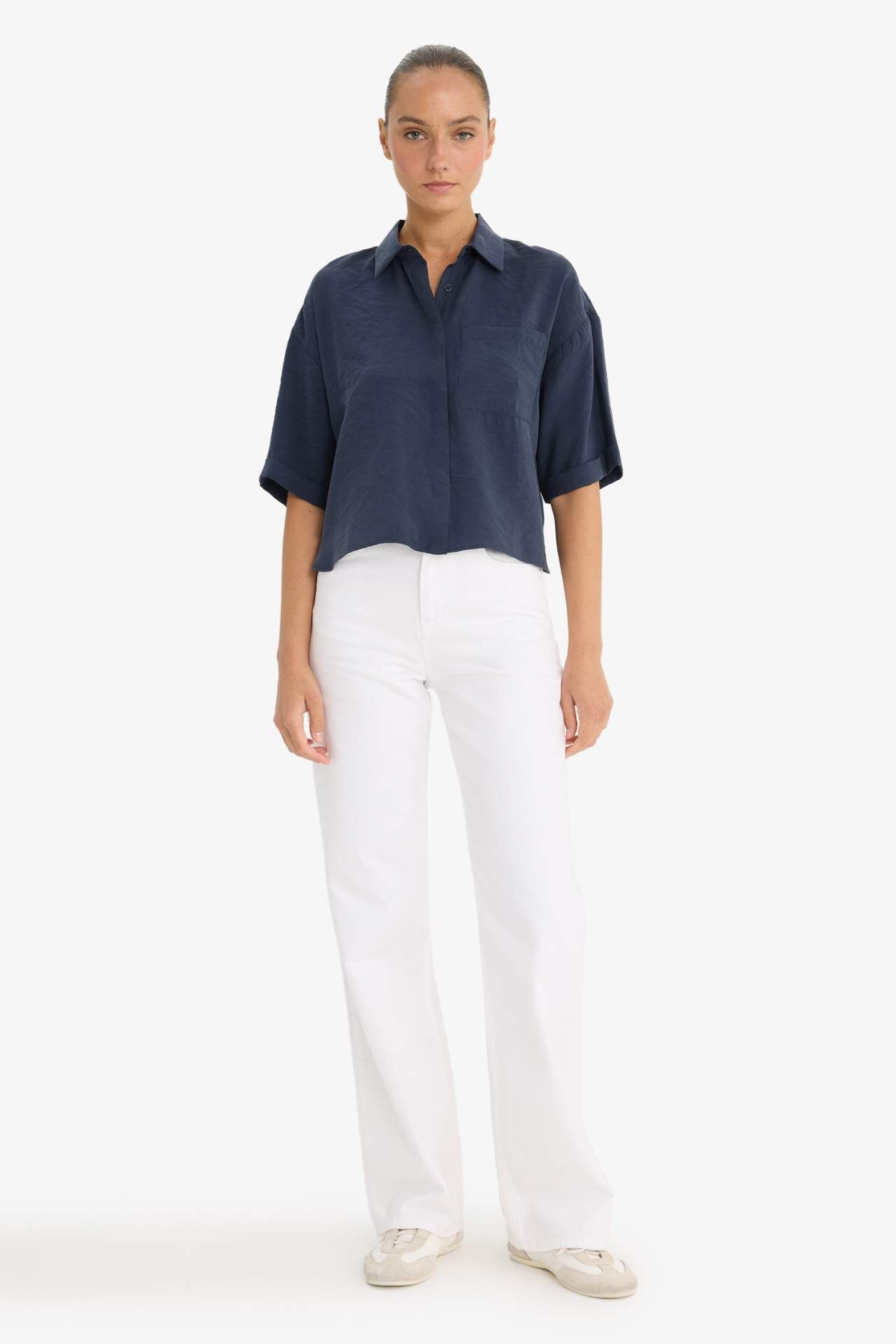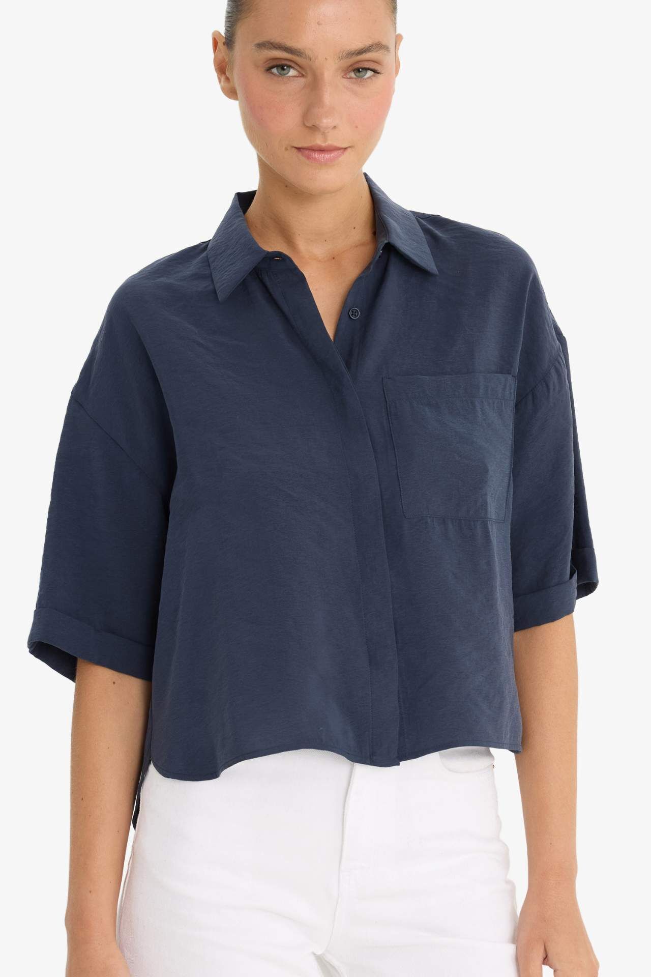 Loose Fit Gömlek Yaka Modal Kısa Kollu Gömlek