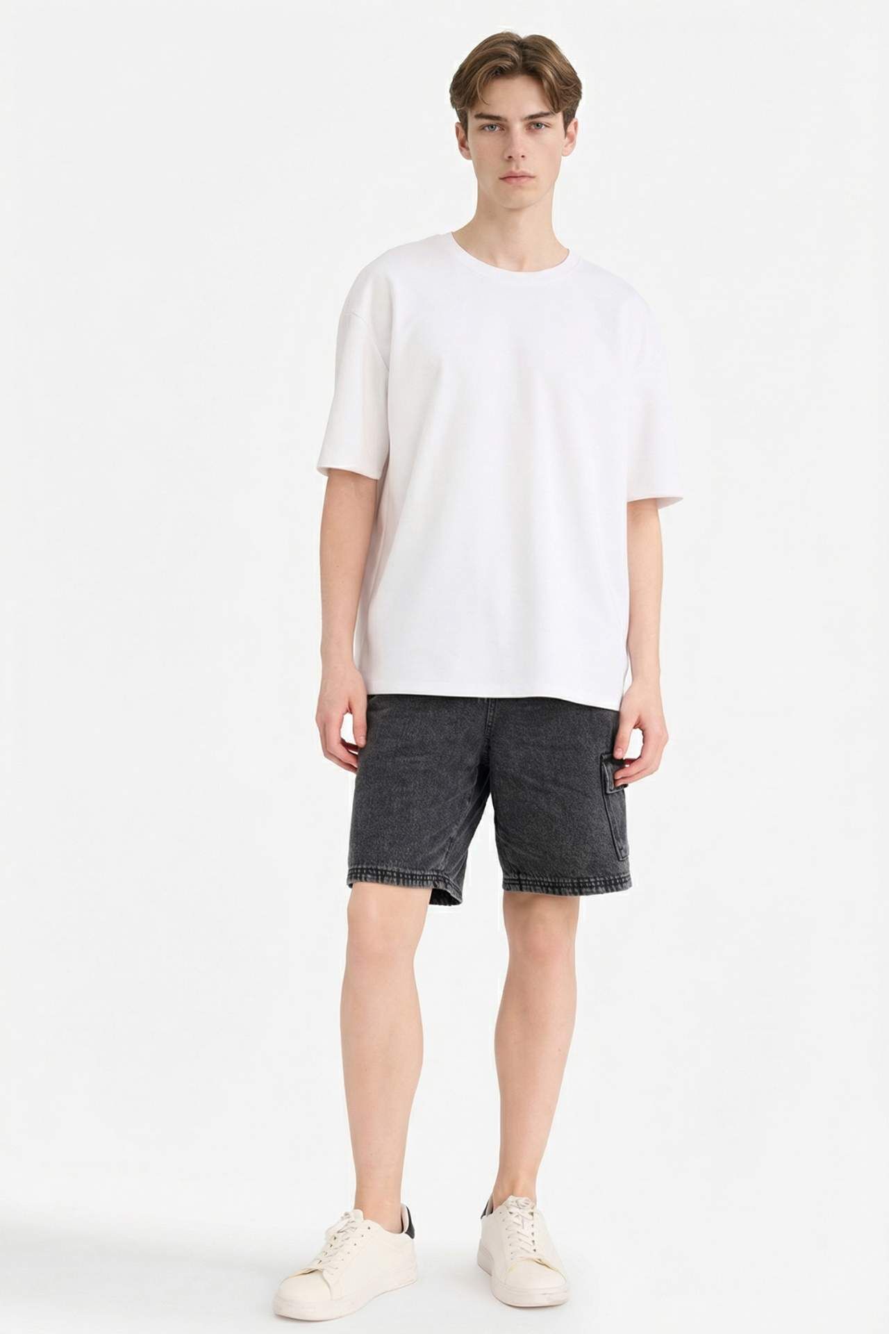Loose fit jean bermuda, rahat kesimi ve şık tasarımıyla yaz aylarında vazgeçilmez bir parça. Geniş paça detayları, serin ve konforlu bir kullanım sunarken, şık bir görünüm sağlar. Hem günlük gezilerde hem de rahat kombinlerde rahatça tercih edilebilir. Pamuk 100%,Pamuk 100%,Pamuk 100%,Pamuk 100%,Pamuk 100%,Pamuk 100%,Pamuk 100%,Pamuk 100% Manken Bedeni: Göğüs: 0 Boy: 0 Basen: 0 Bel: 0