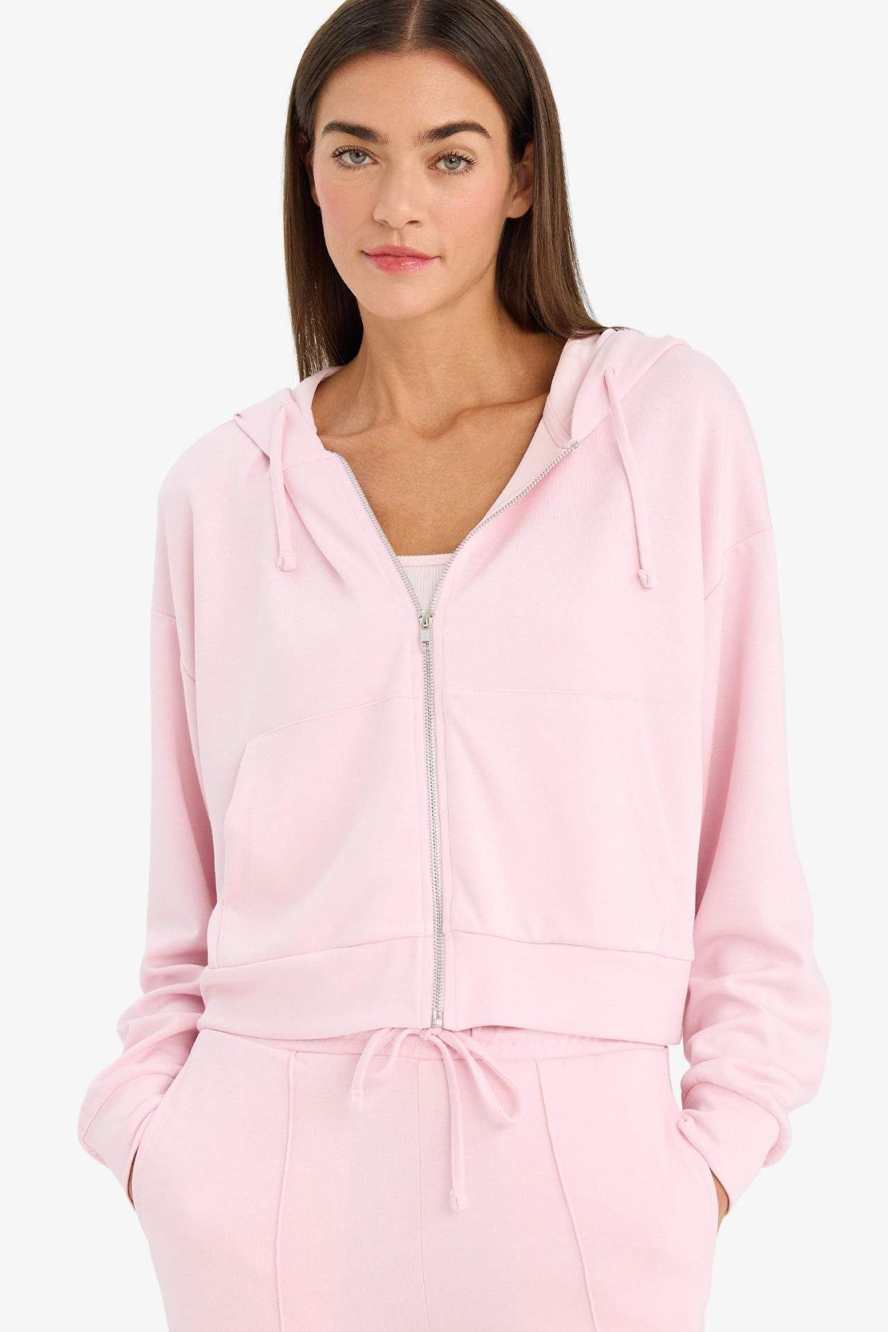 Loose fit kapüşonlu modal hırka, yumuşak ve hafif dokusuyla gün boyu rahatlık sunar. Rahat kesimi ve kapüşon detayıyla günlük ve spor kombinler için ideal bir tercihtir. Elastan 5%,Viskoz 48%,Poliester 47% Manken Bedeni: Göğüs: 0 Boy: 0 Basen: 0 Bel: 0
