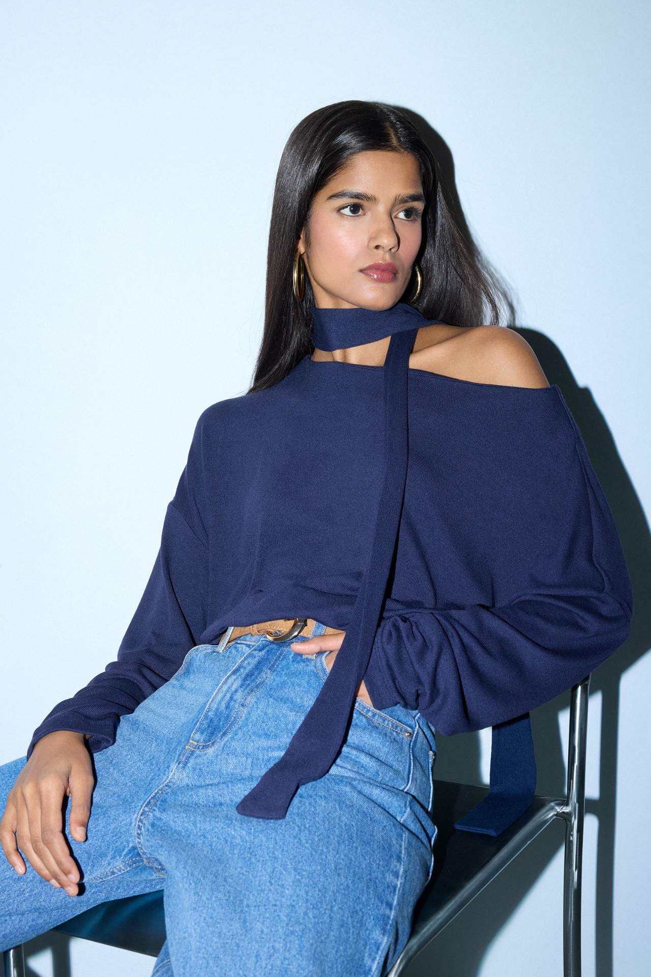 Loose Fit Kayık Yaka Uzun Kollu Tişört