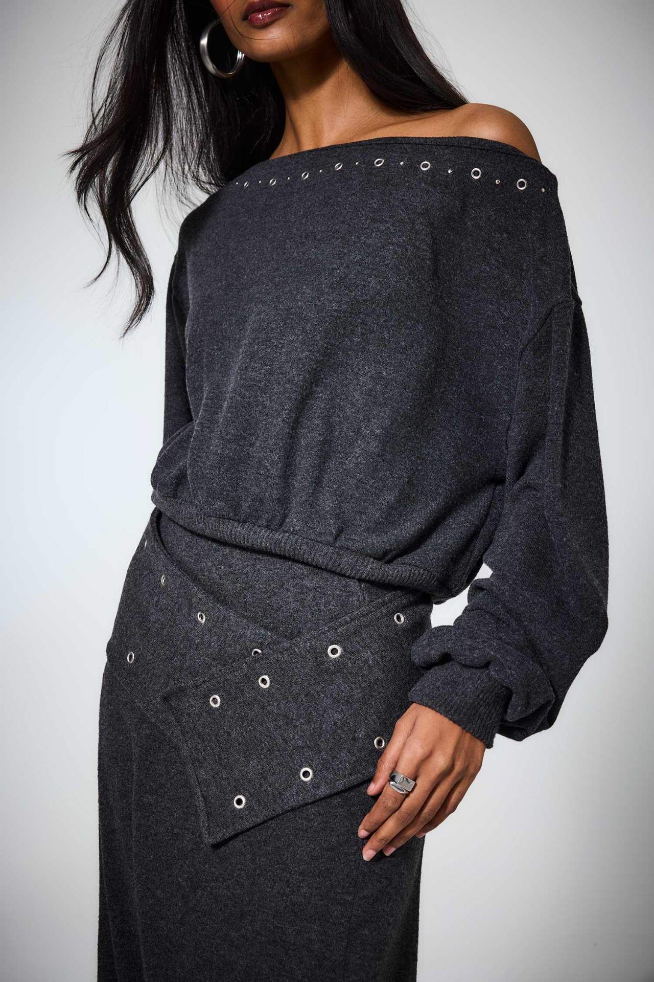 Loose Fit Omzu Açık Uzun Kollu Tişört