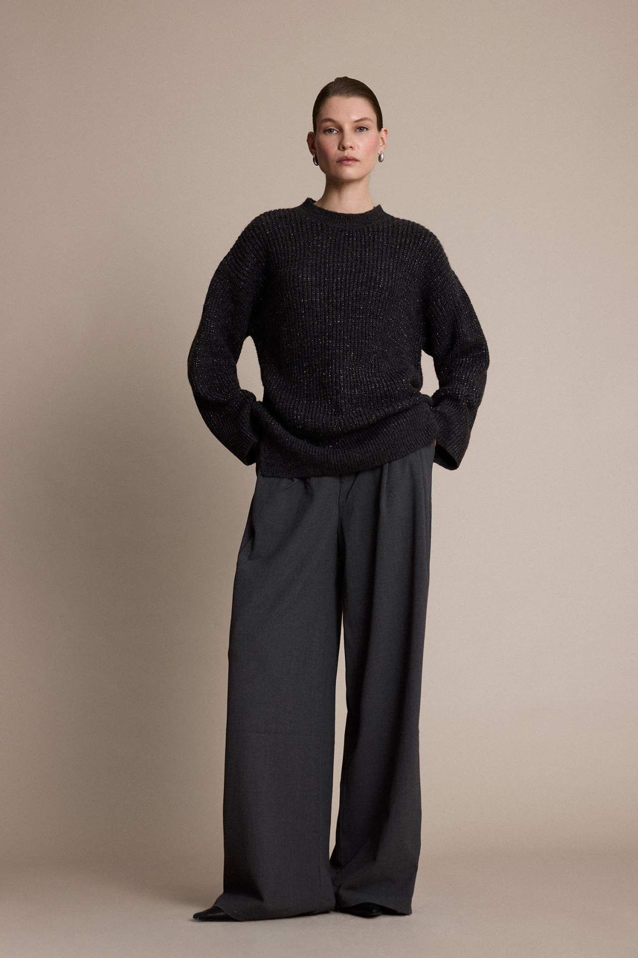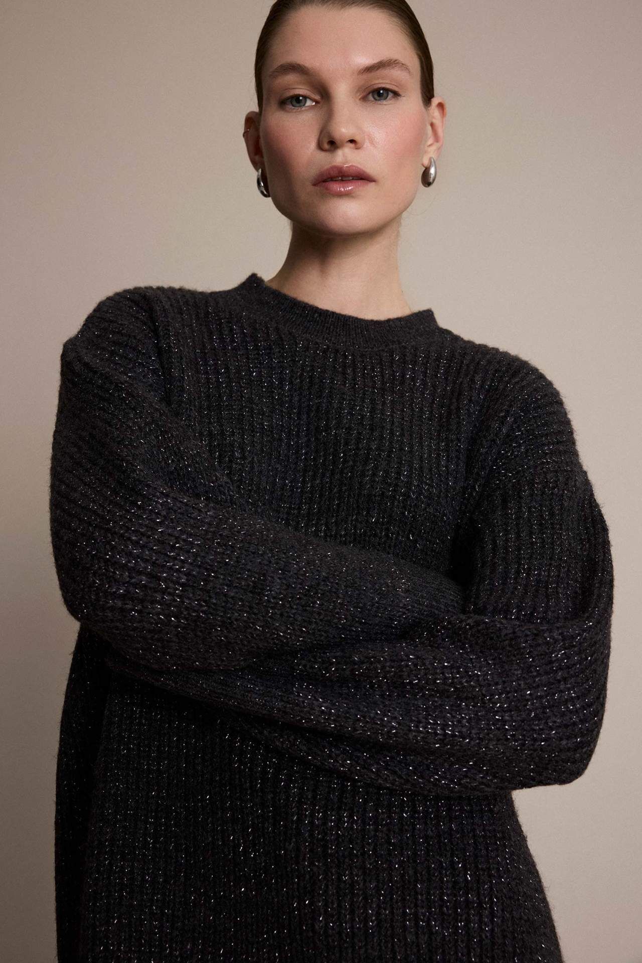 Loose Fit Bisiklet Yaka Simli Kumaş Triko Kazak Tunik, bol kesimi ve simli dokusuyla göz alıcı bir şıklık sunar. Yumuşak ve hafif kumaşı gün boyu konfor sağlar. Bisiklet yaka ve tunik boyu, rahatlığı stil ile buluşturan ideal bir tercih haline getirir. Metal Elyaf 5%,Akrilik 75%,Poliester 20%,Metal Elyaf 5%,Akrilik 75%,Poliester 20%,Metal Elyaf 5%,Akrilik 75%,Poliester 20%,Metal Elyaf 5%,Akrilik 75%,Poliester 20%,Metal Elyaf 5%,Akrilik 75%,Poliester 20%,Metal Elyaf 5%,Akrilik 75%,Poliester 20%,Metal Elyaf 5%,Akrilik 75%,Poliester 20% Manken Bedeni: Göğüs: 78 Boy: 1,76 Basen: 86 Bel: 60