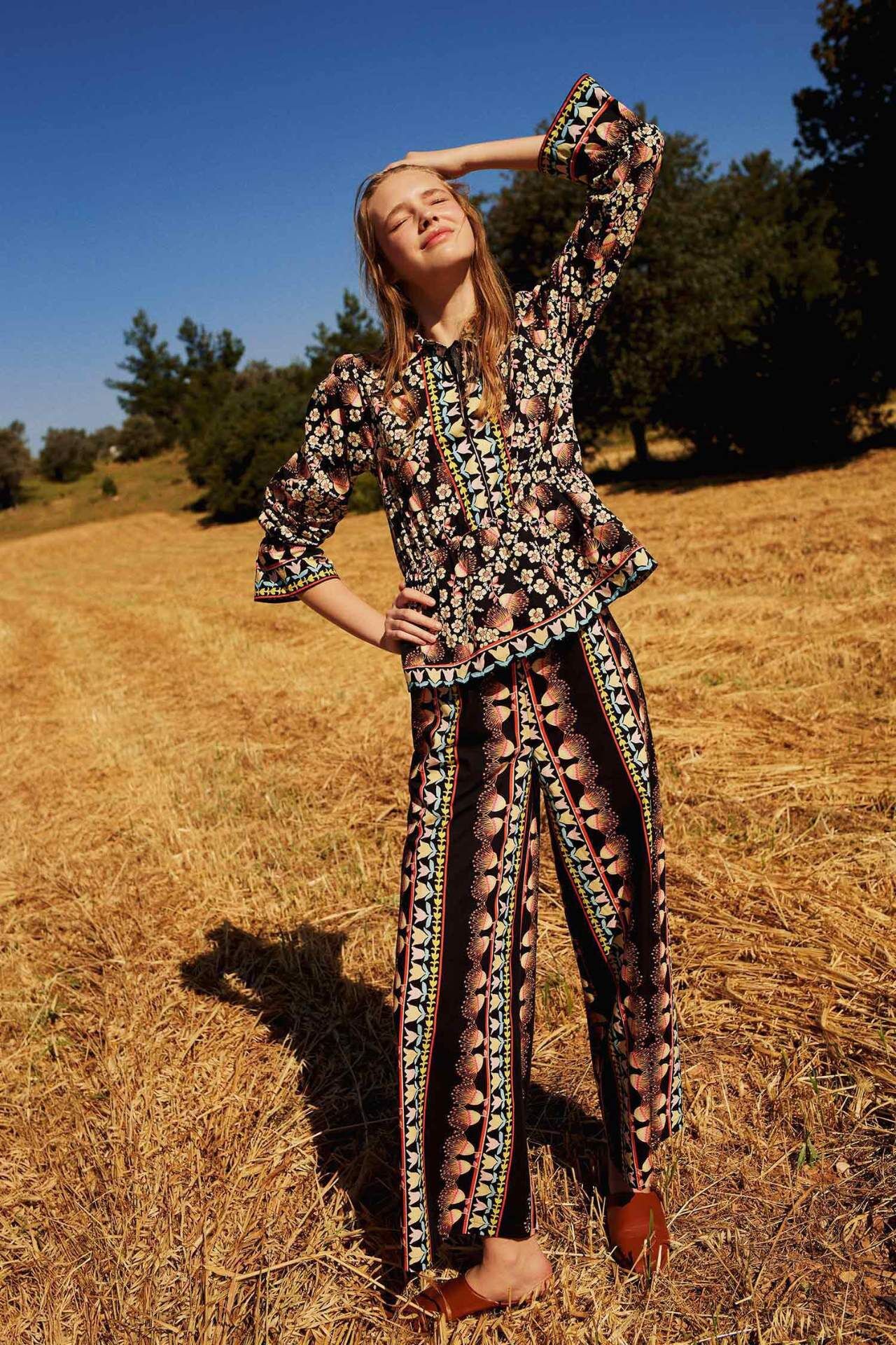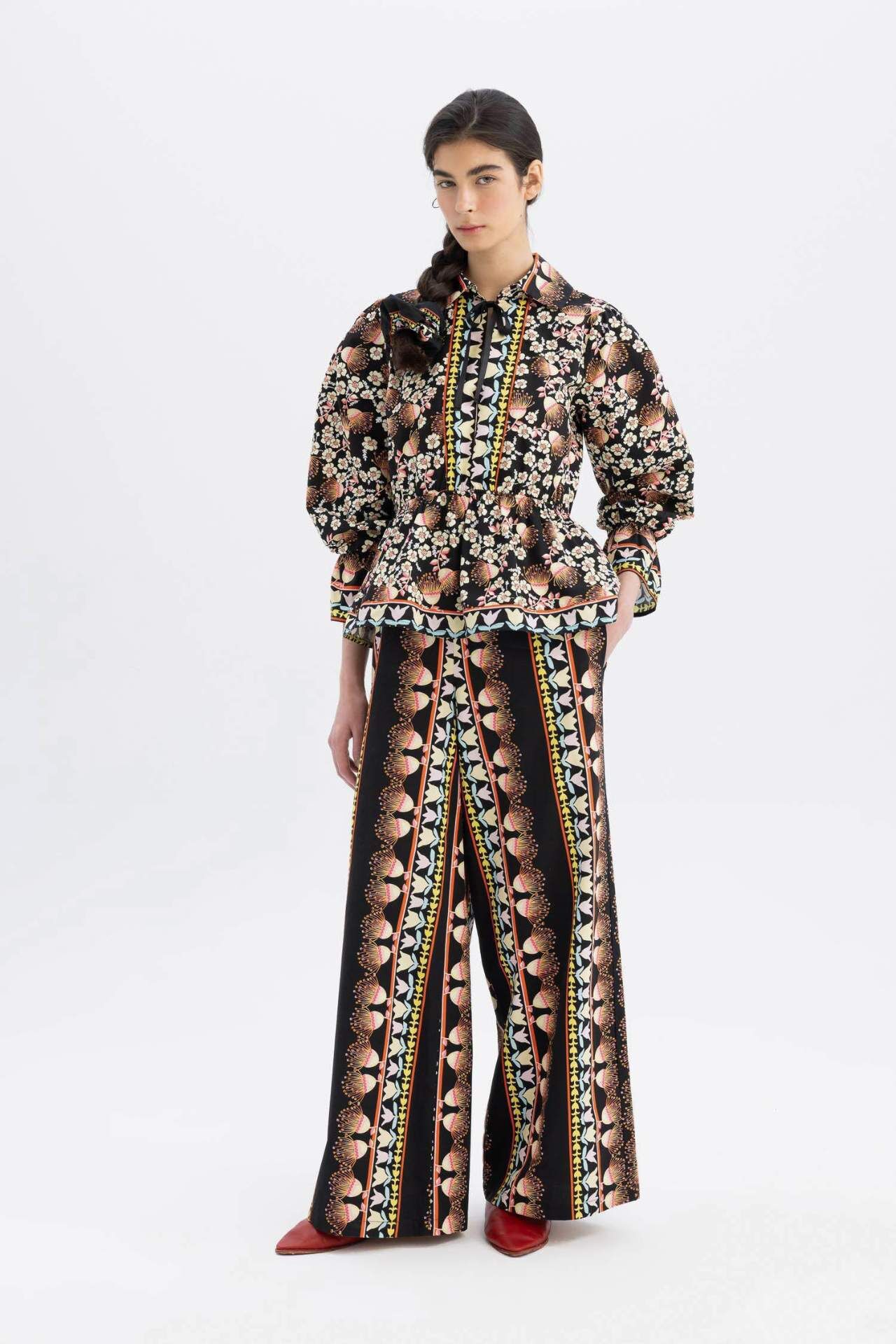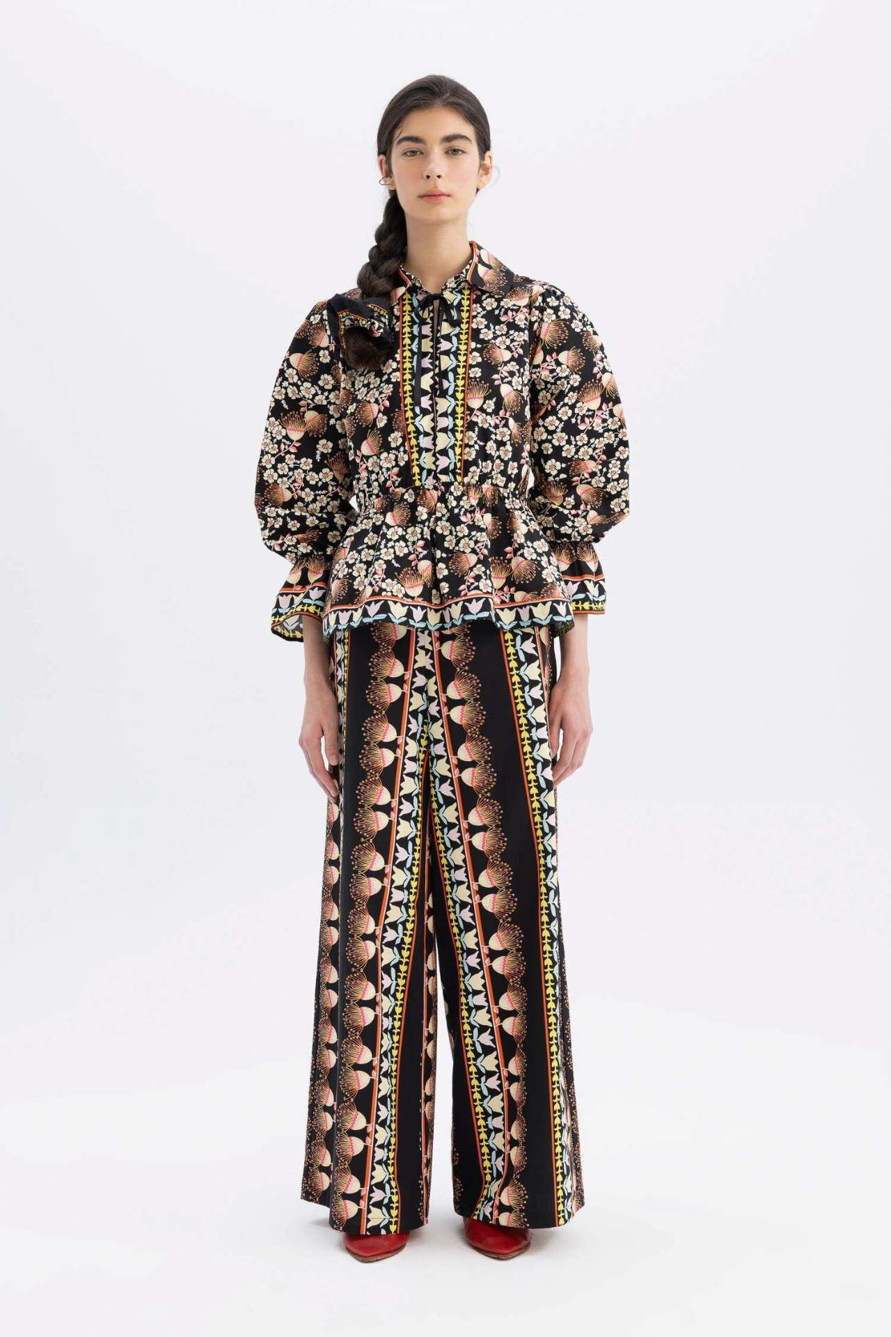 Lug Von Siga x DeFacto Wide Leg Desenli Normal Bel Geniş Paça Maxi Poplin Pantolon