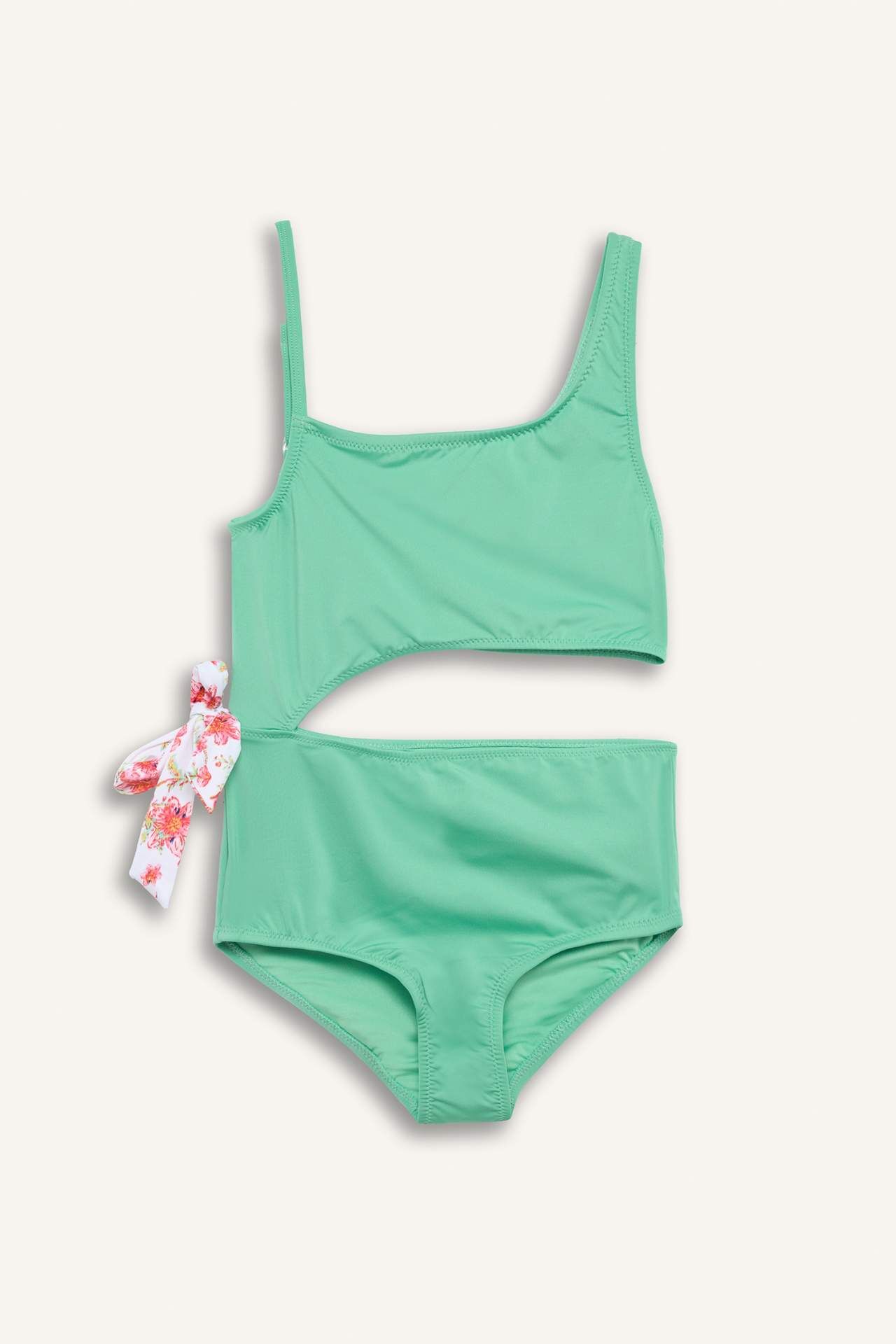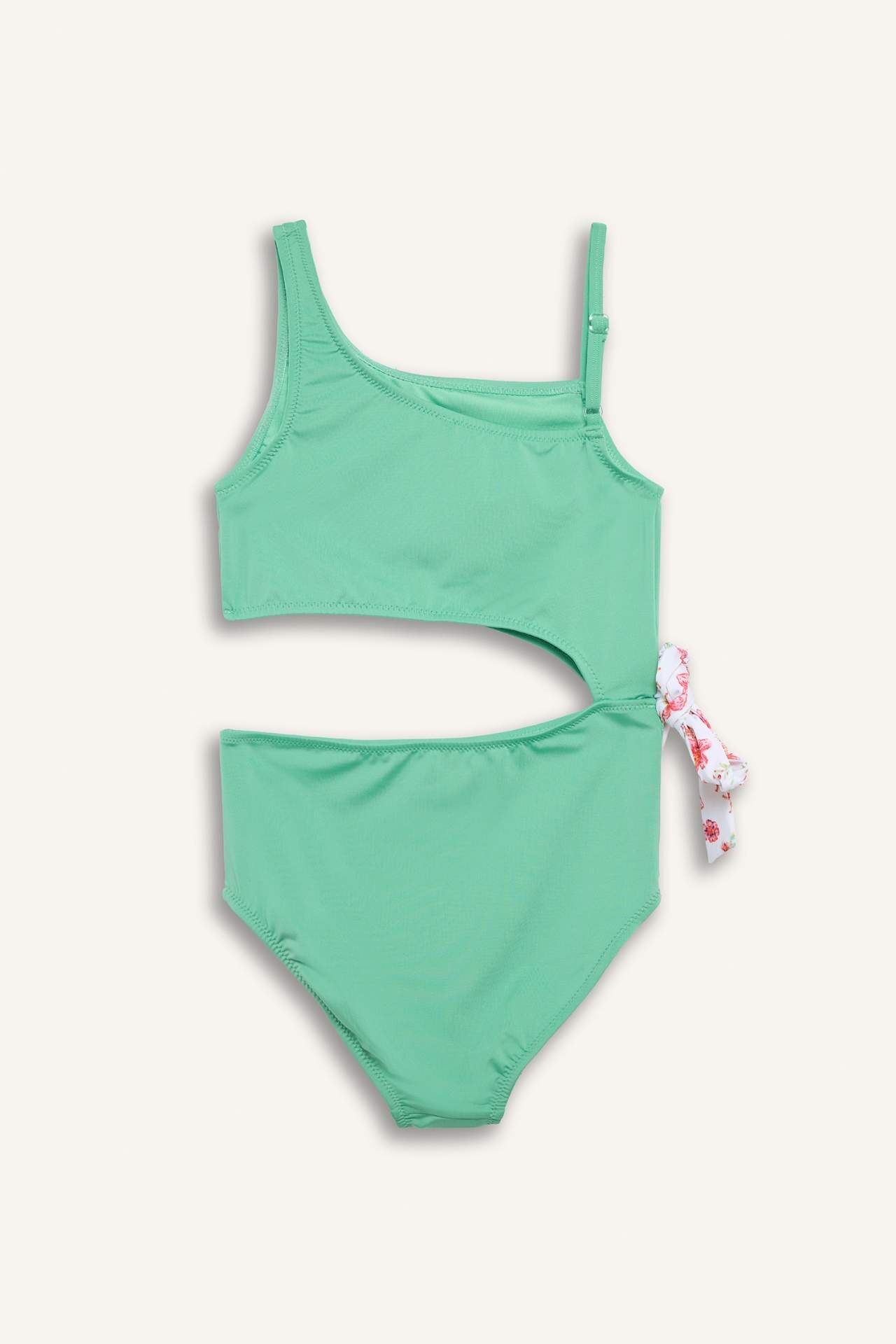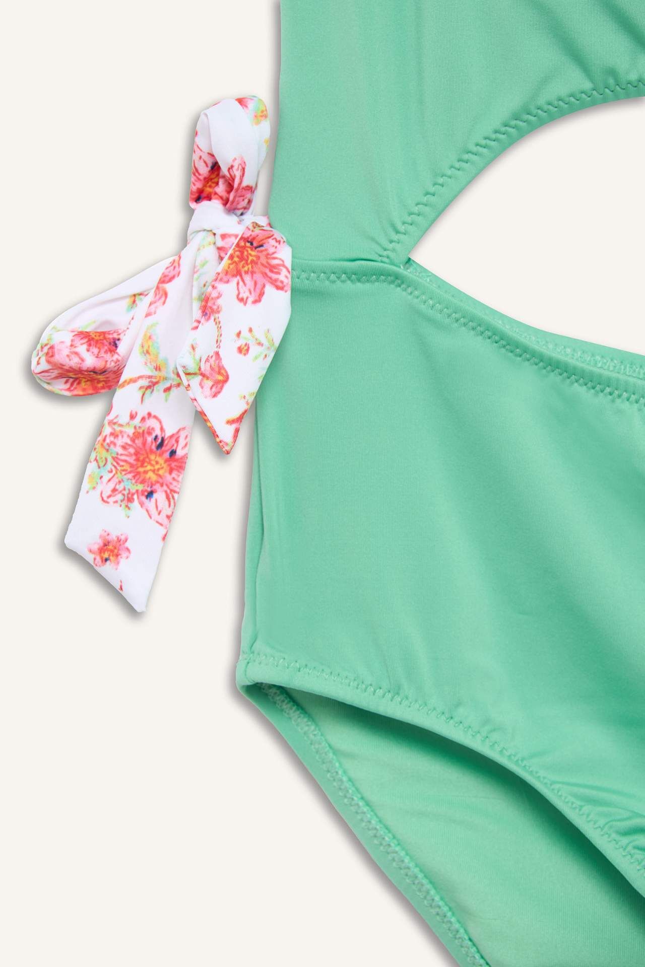 Tek omuz kesim mayo, şık ve modern tasarımıyla dikkat çeker. Canlı mint yeşili rengi ve çiçek desenli bağlama detayıyla enerjik bir hava katar. Rahat kesimi ve kaliteli kumaşı sayesinde deniz ve havuz keyfini konforlu hale getirir. Elastan 9%,Poliester 91%,Elastan 12%,Poliester 88%