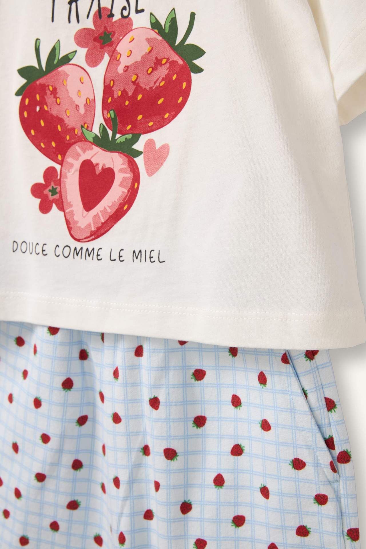 Yumuşak ve rahat kumaşıyla konforlu bir kullanım sunar. Renkli ve sevimli meyve desenleriyle şirin bir görünüm kazandırır. Günlük giyimde konforlu bir seçenektir. Pamuk 100%,Pamuk 100%