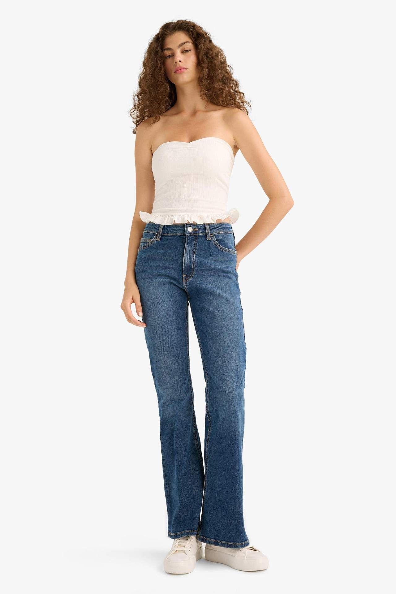 DeFacto Mia Flare Fit Normal Bel İspanyol Paça Uzun Jean Pantolon E9158AX25AUNM34