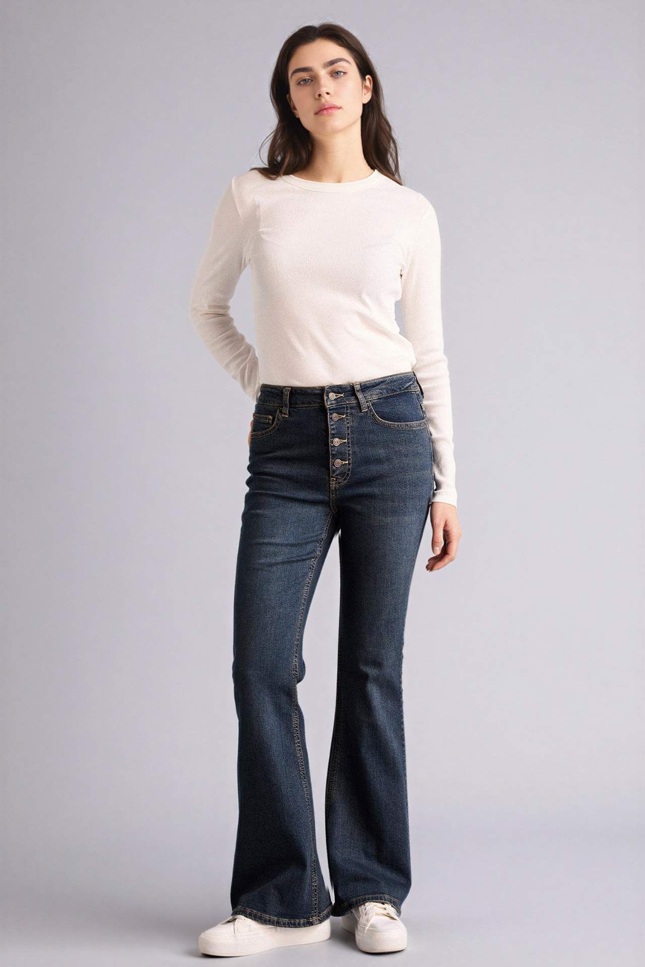 Mia Flare Fit Normal Bel Uzun Jean Yıkamalı Pantolon