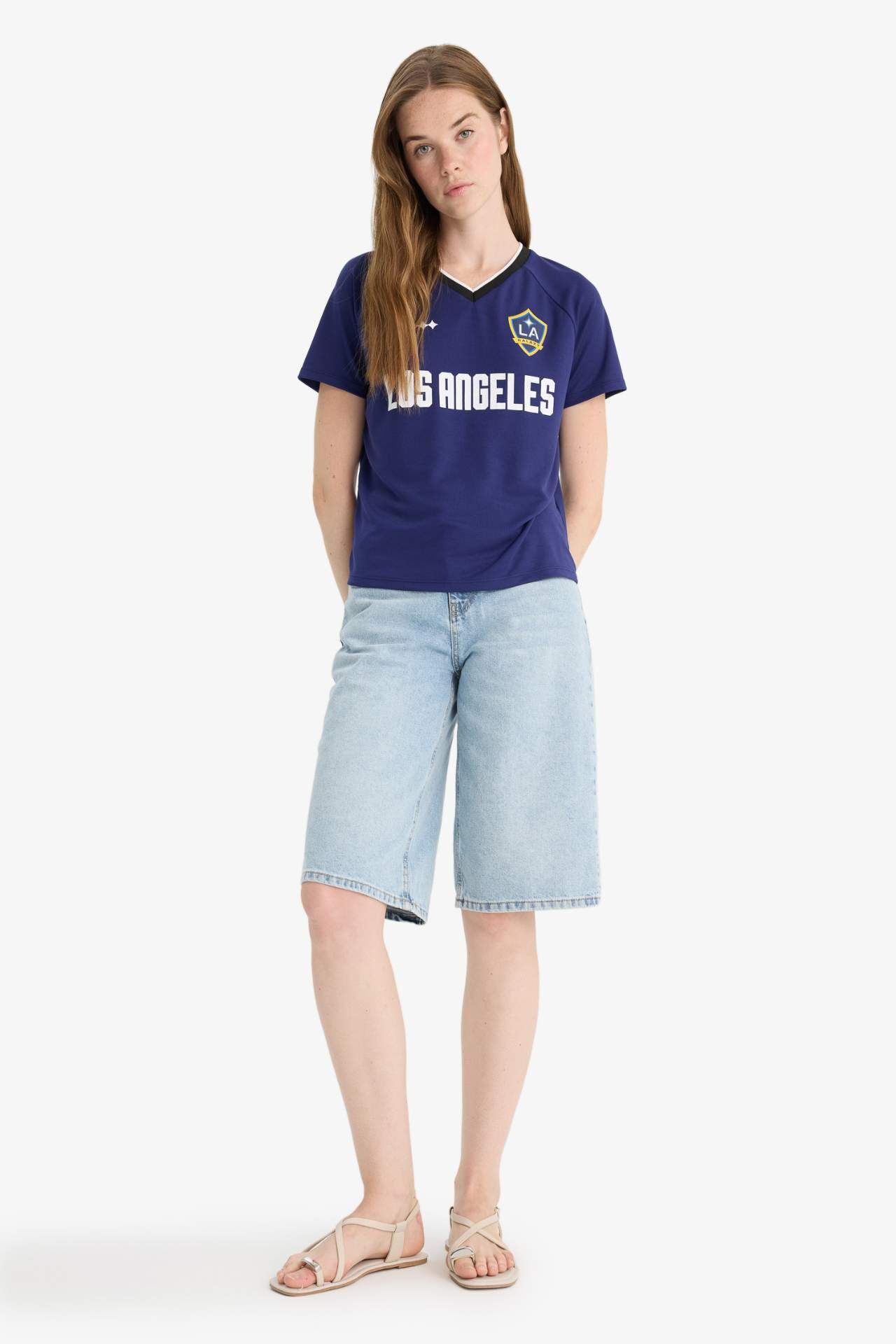 DeFacto MLS Regular Fit V Yaka Baskılı Forma Kumaşı Kısa Kollu Tişört