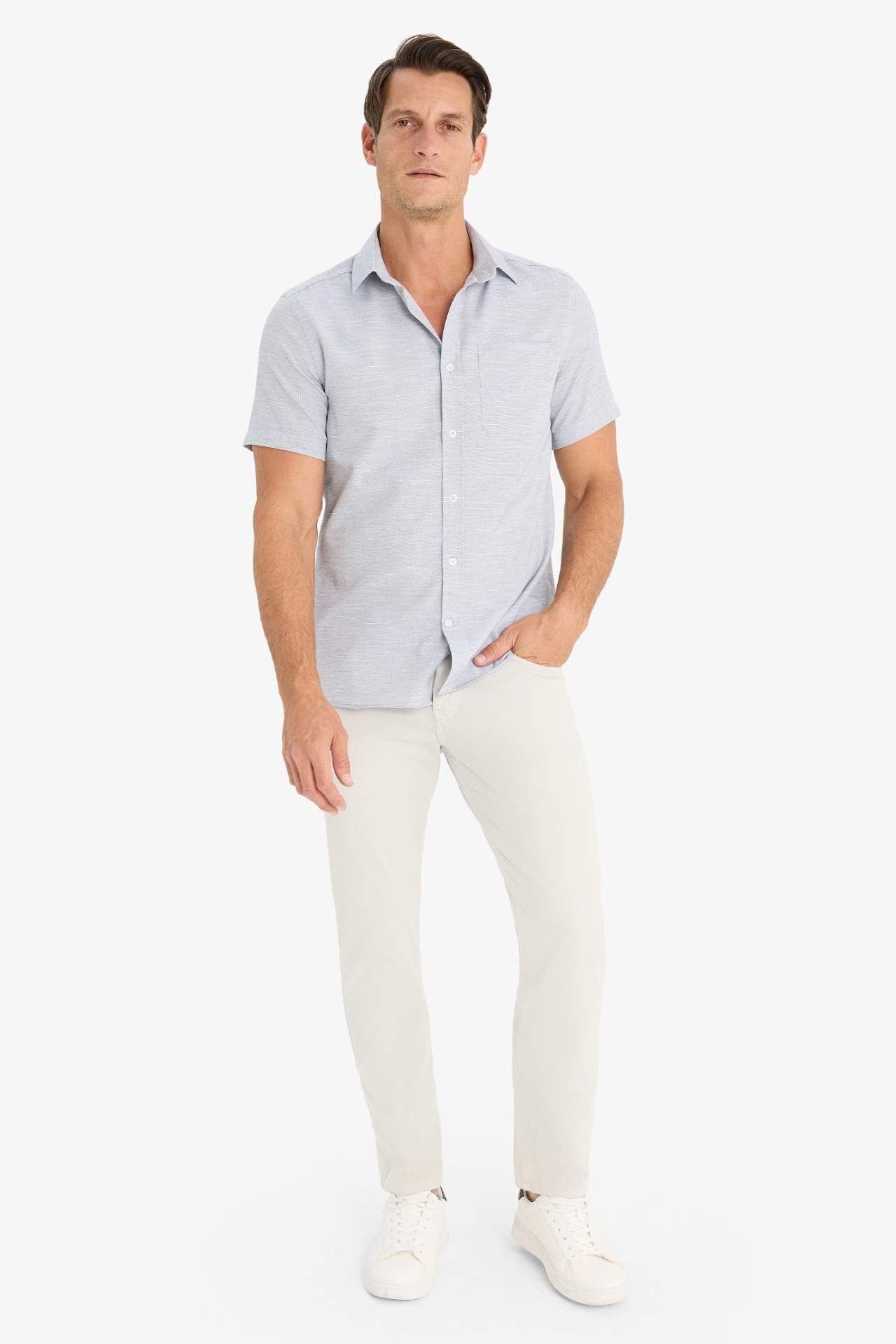 Modern Fit Polo Yaka Kısa Kollu Gömlek, tasarımı ve rahat kesimiyle her gardıropta yer alması gereken bir parça. Şık polo yaka detayı ve modern fit kesimi, hem rahat hem de şık bir görünüm sağlar. Hem gündüz hem de akşam kombinleriniz için mükemmel bir tercih! Pamuk 56%,Poliester 44%,Pamuk 56%,Poliester 44%,Pamuk 56%,Poliester 44% Manken Bedeni: Göğüs: 100 Boy: 1,88 Basen: 96 Bel: 84