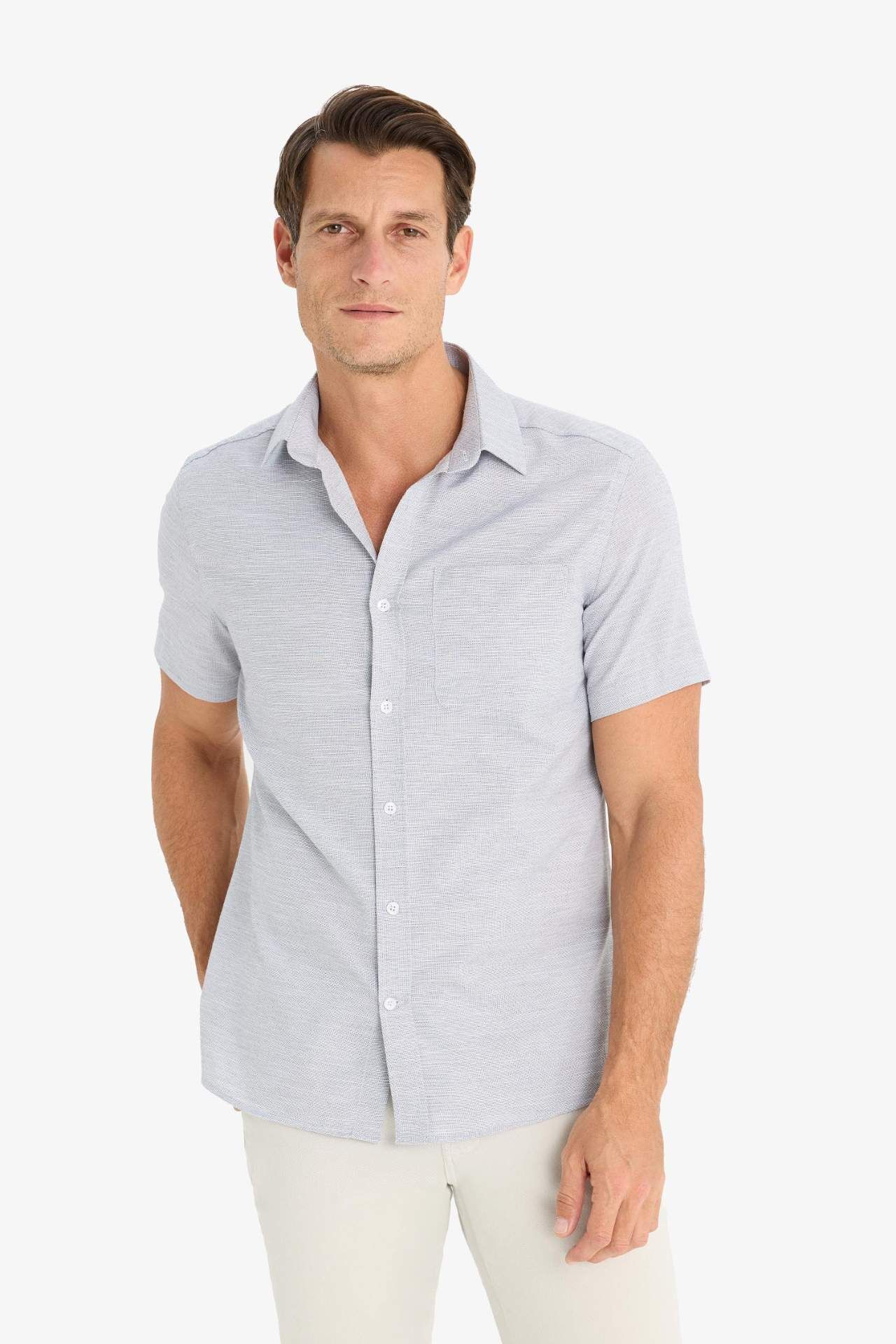 DeFacto Modern Fit Polo Yaka Basic Düz Kısa Kollu Gömlek E5077AX25SMBK81