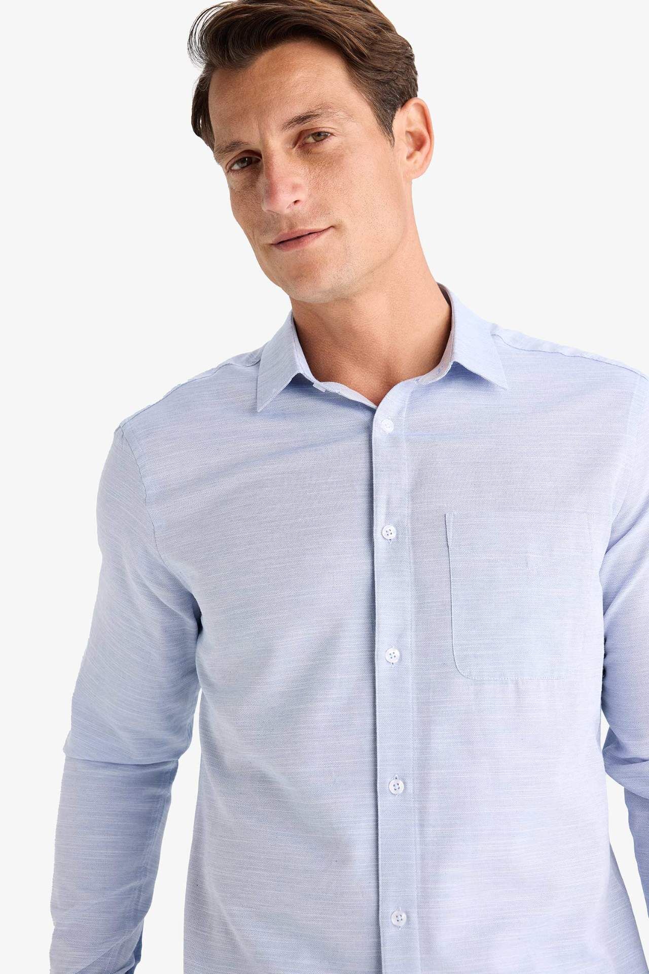 DeFacto Modern Fit Polo Yaka Basic Düz Uzun Kollu Gömlek E5045AX25SMIN100