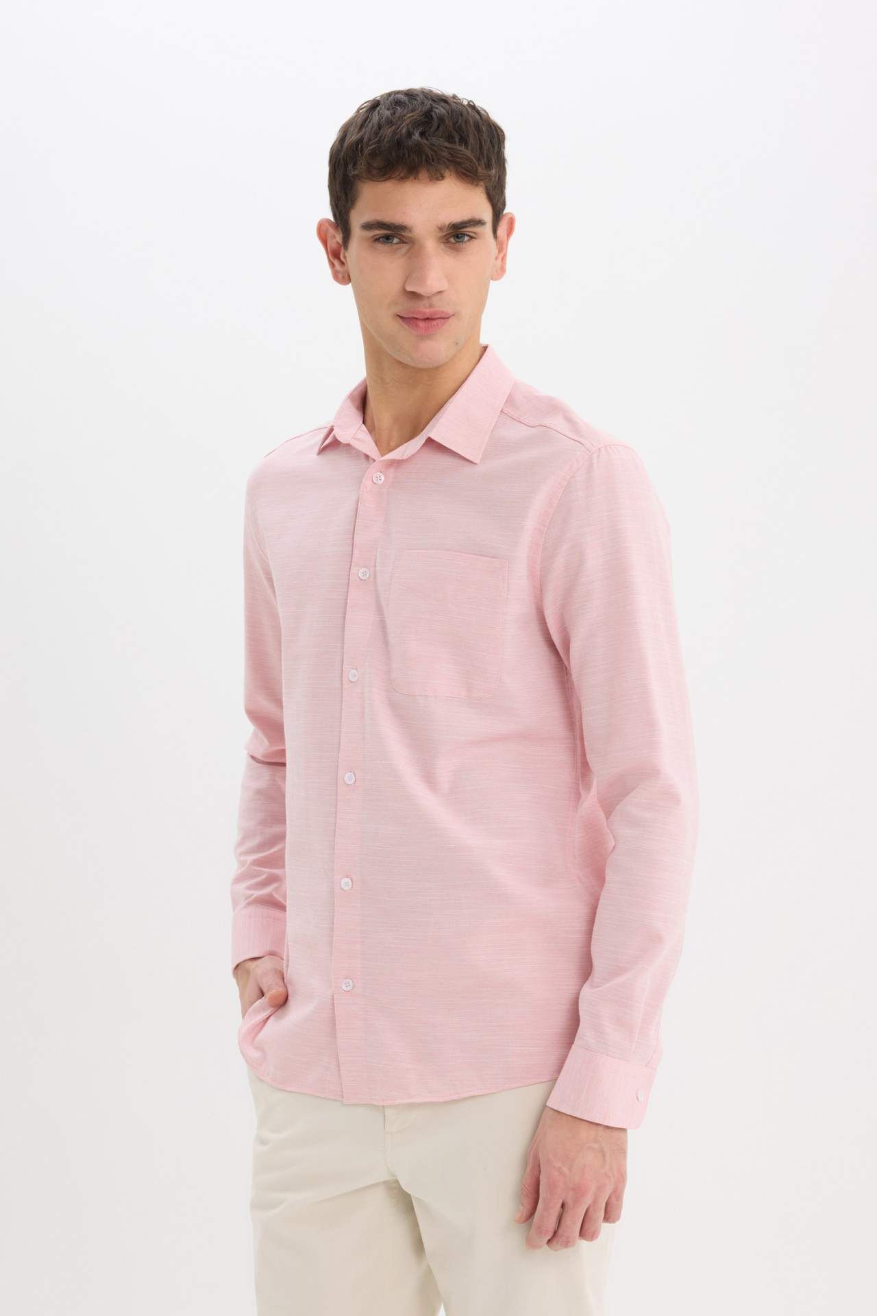 DeFacto Modern Fit Polo Yaka Basic Düz Uzun Kollu Gömlek E5045AX25SMRD92