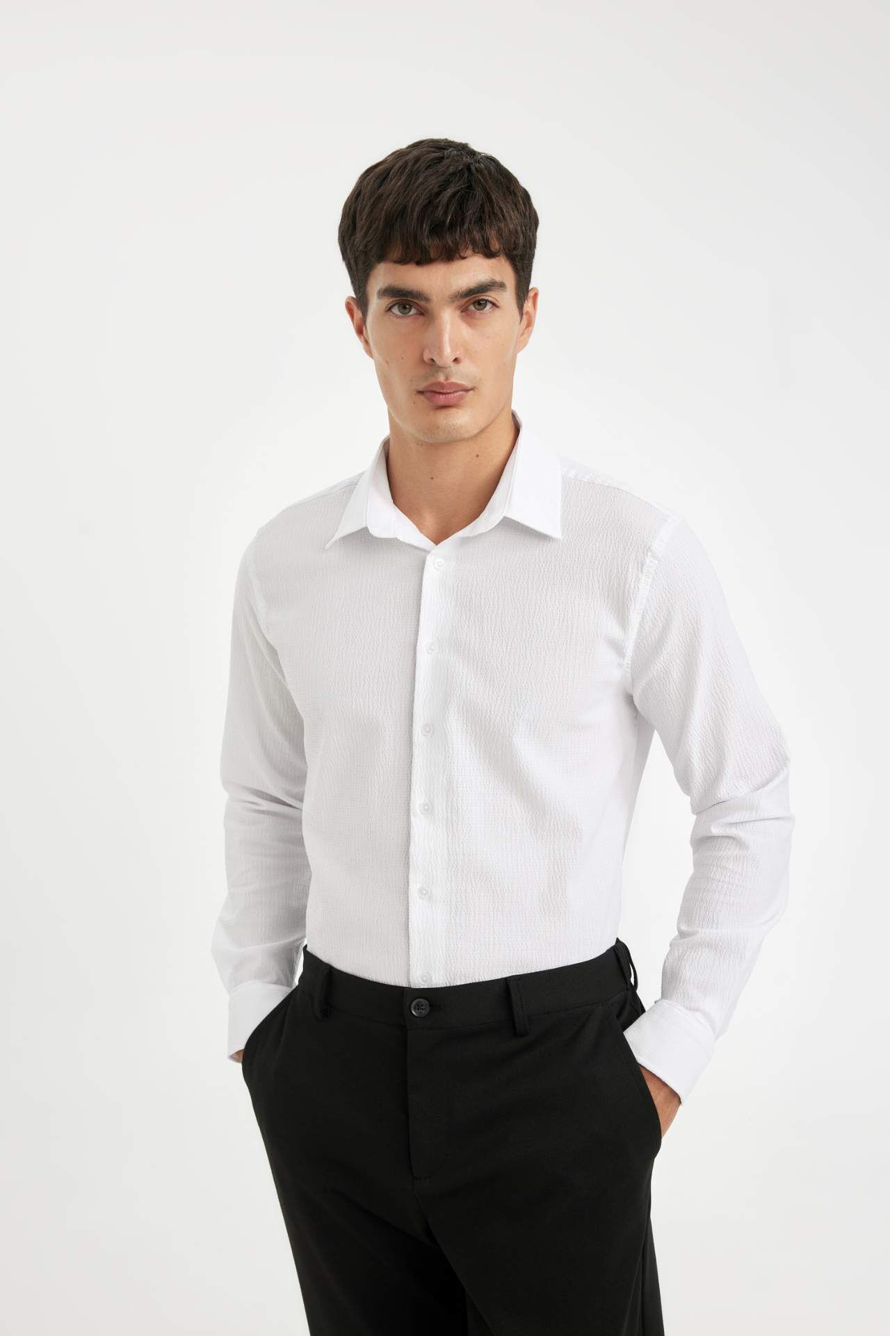 DeFacto Modern Fit Polo Yaka Krinkıl Uzun Kollu Gömlek D5187AX24AUWT79