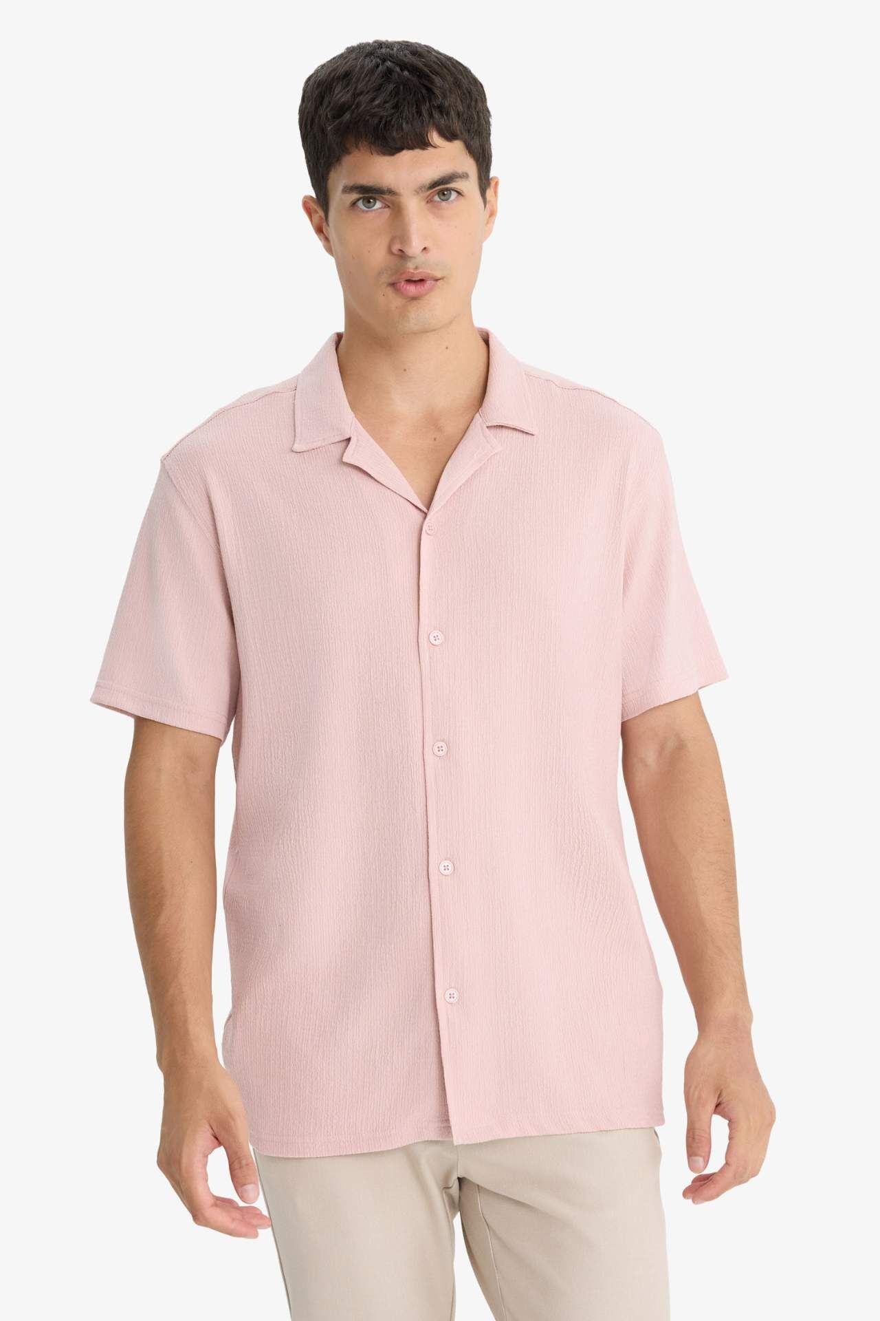 DeFacto Modern Fit Polo Yaka Penye Kısa Kollu Gömlek C4125AX25SMBR134