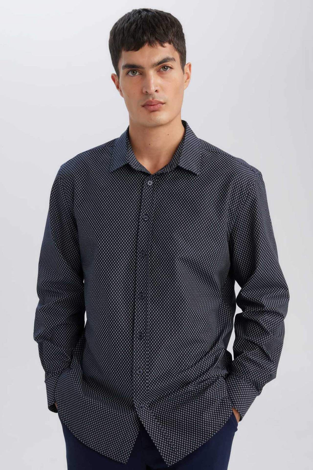 DeFacto Modern Fit Polo Yaka Poplin Uzun Kollu Gömlek D3377AX24AUNV82