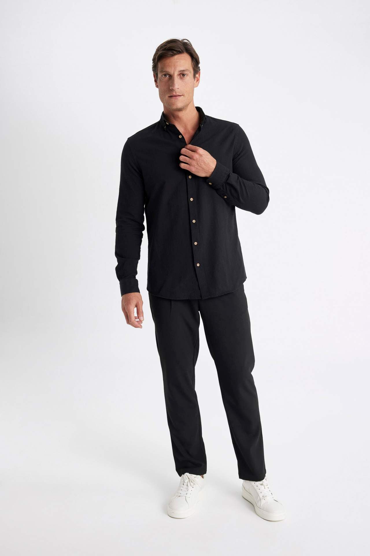 DeFacto DeFactoFit Modern Fit Polo Yaka Uzun Kollu Gömlek T6284AZ24SMBK27