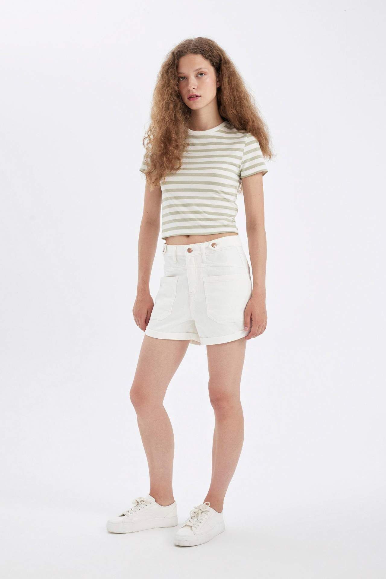 DeFacto Mom Fit Yüksek Bel Katlamalı Paça Jean Şort D4585AX24HSWT1