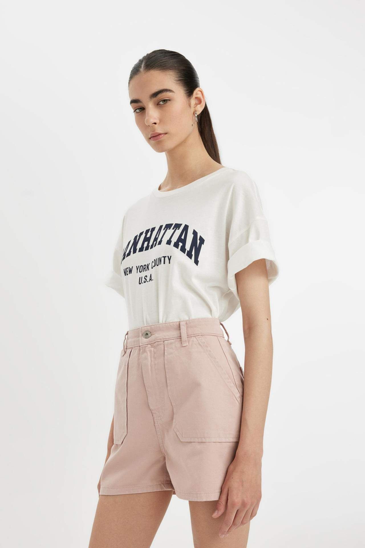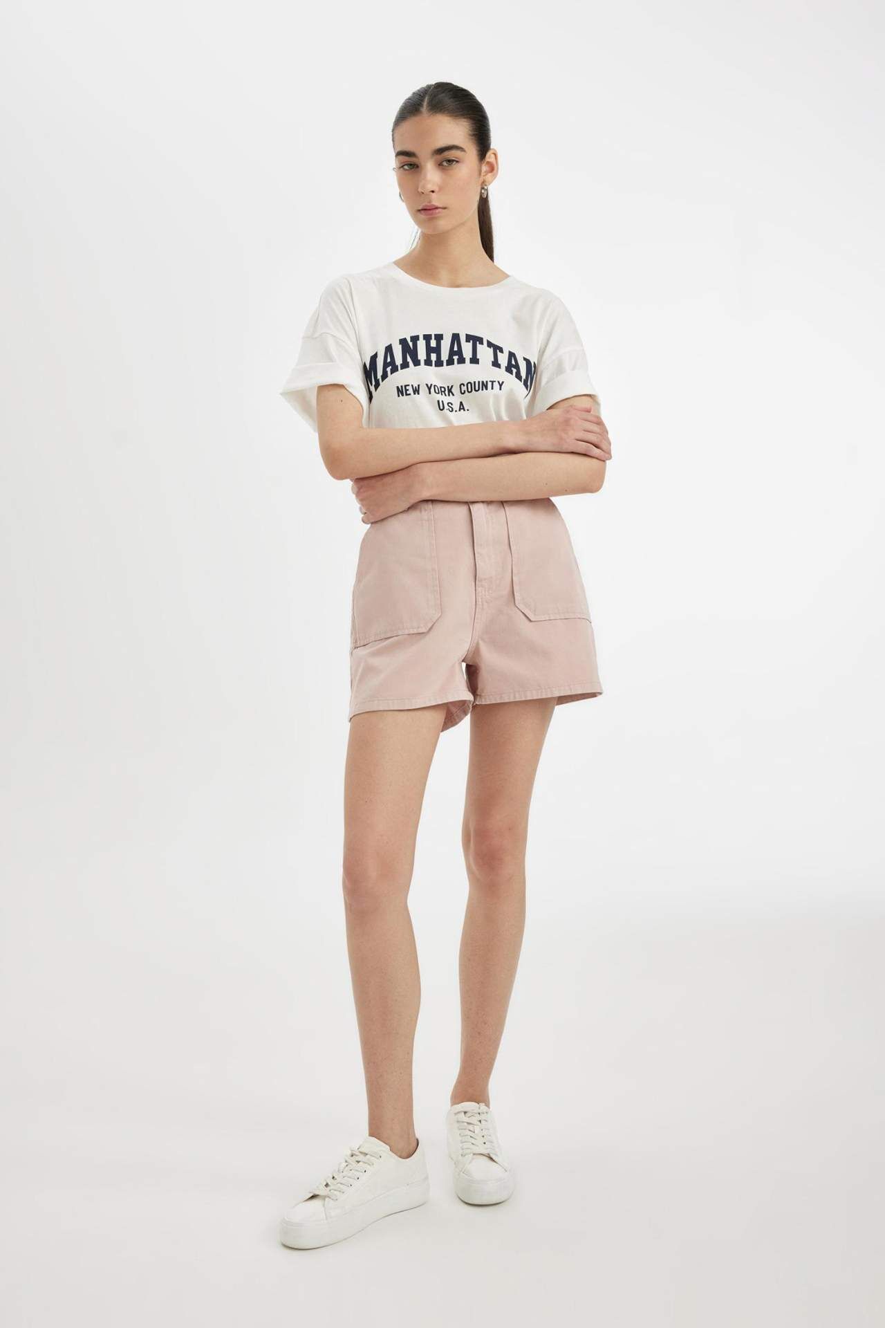DeFactoFit Mom Fit Yüksek Bel Kısa Paça Gabardin Şort