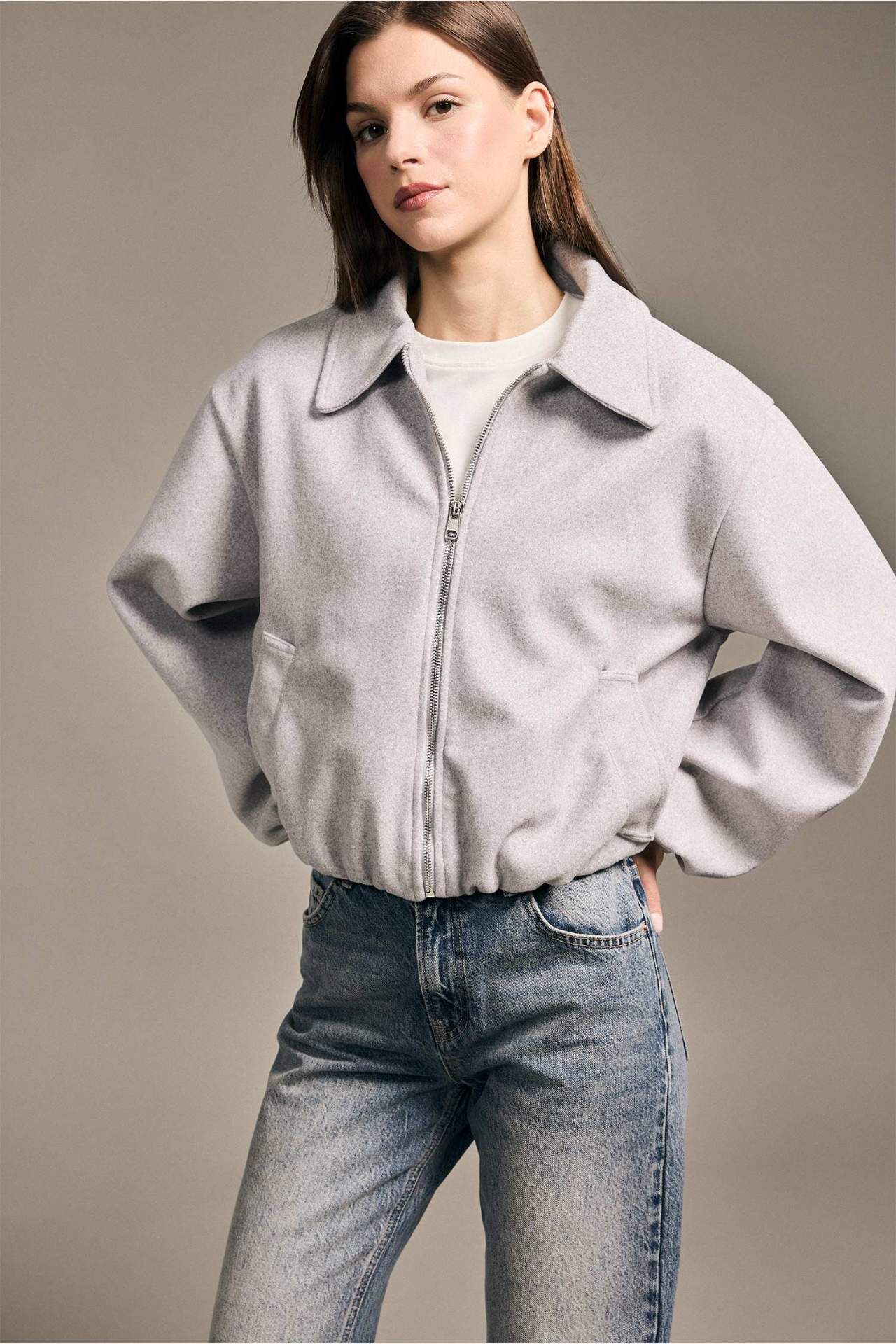 Kısa fermuarlı mont, modern tasarımı ve pratik fermuar detayıyla şıklık sunar. Hafif ve sıcak tutan yapısı, günlük kullanıma uygundur. Poliester 100%,Elastan 3%,Poliester 97% Manken Bedeni: Göğüs: 85 Boy: 1,77 Basen: 89 Bel: 62
