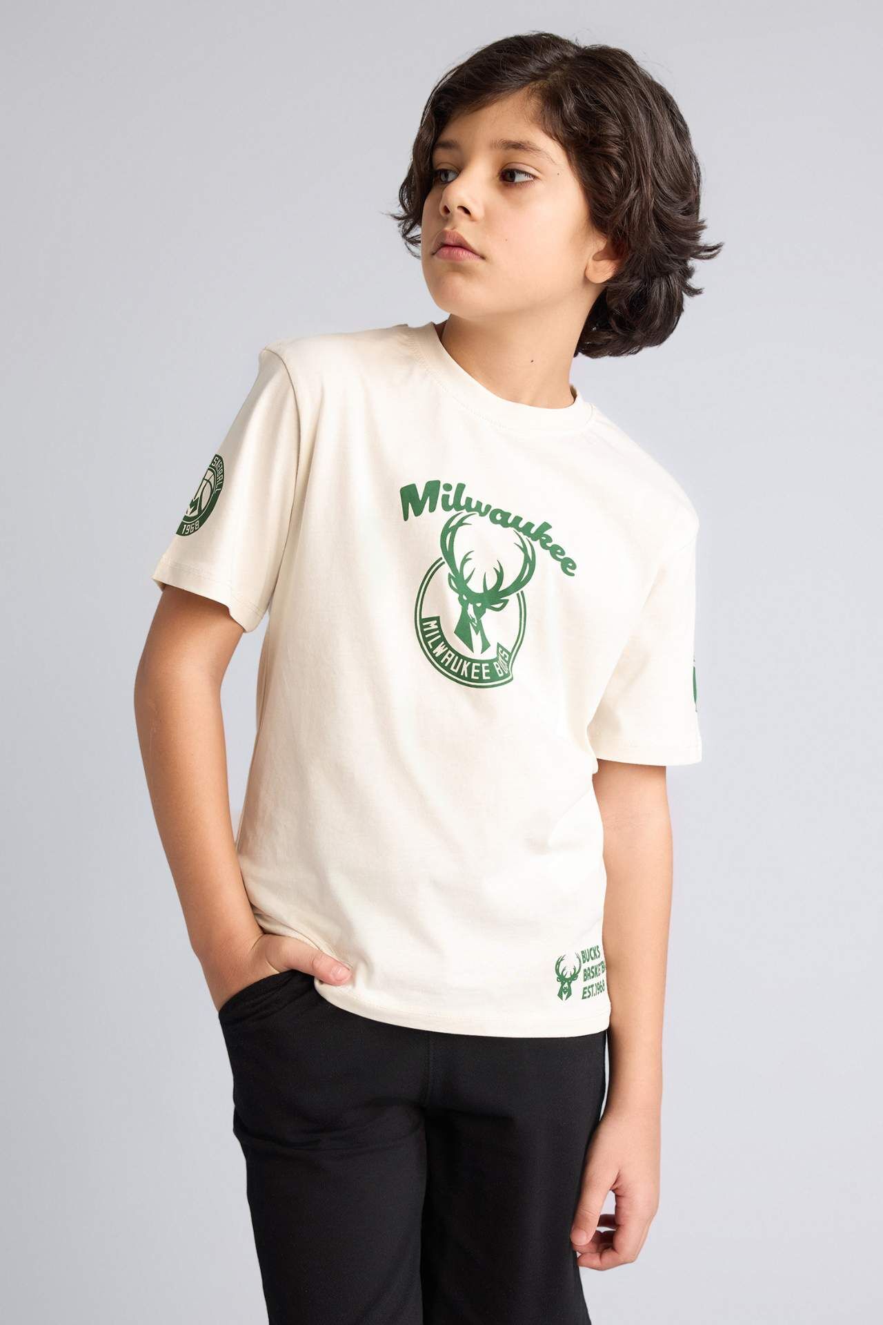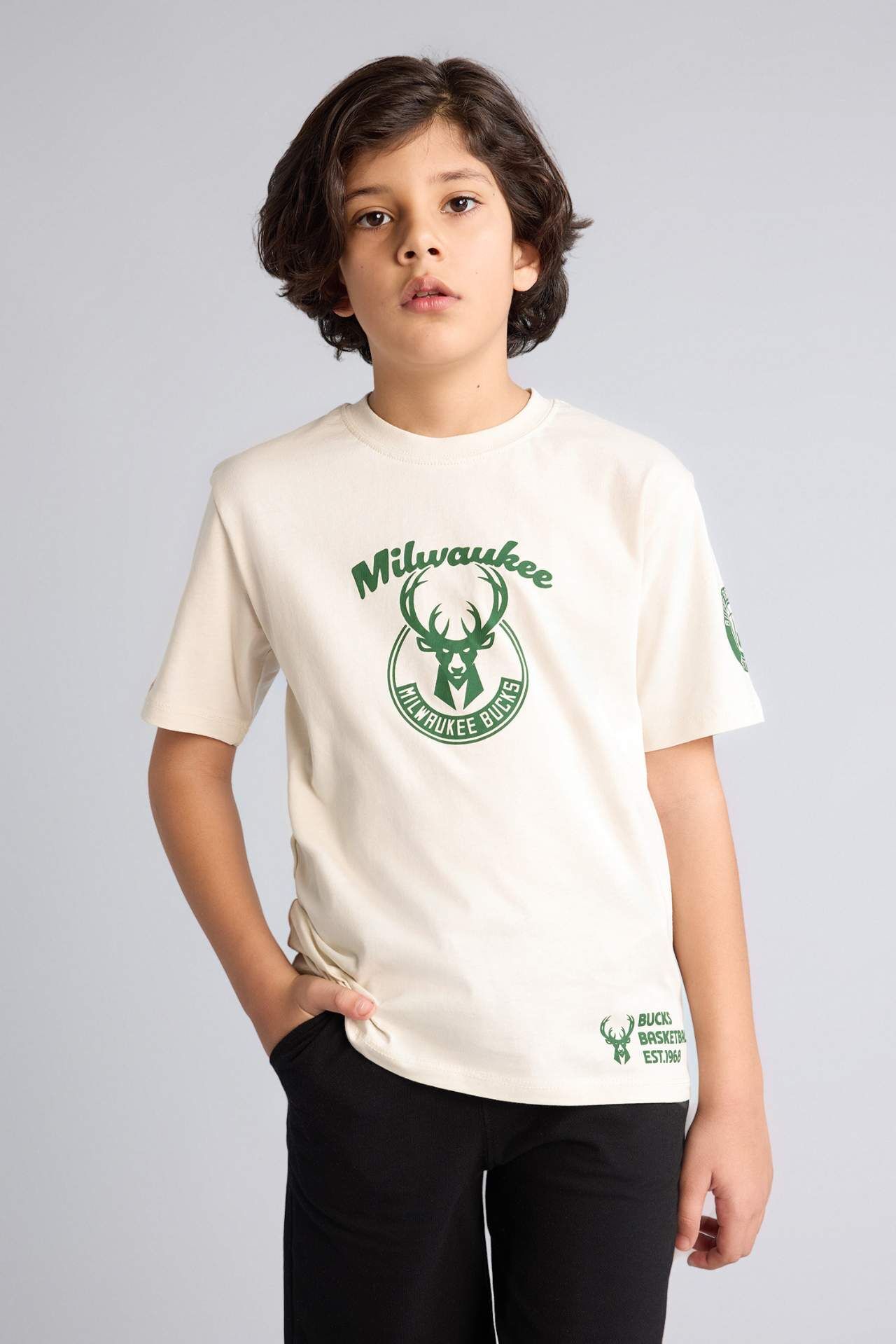 DeFacto NBA Mılwaukee Bucks New Regular Fıt Bisiklet Yaka Kısa Kollu Tişört Erkek Çocuk