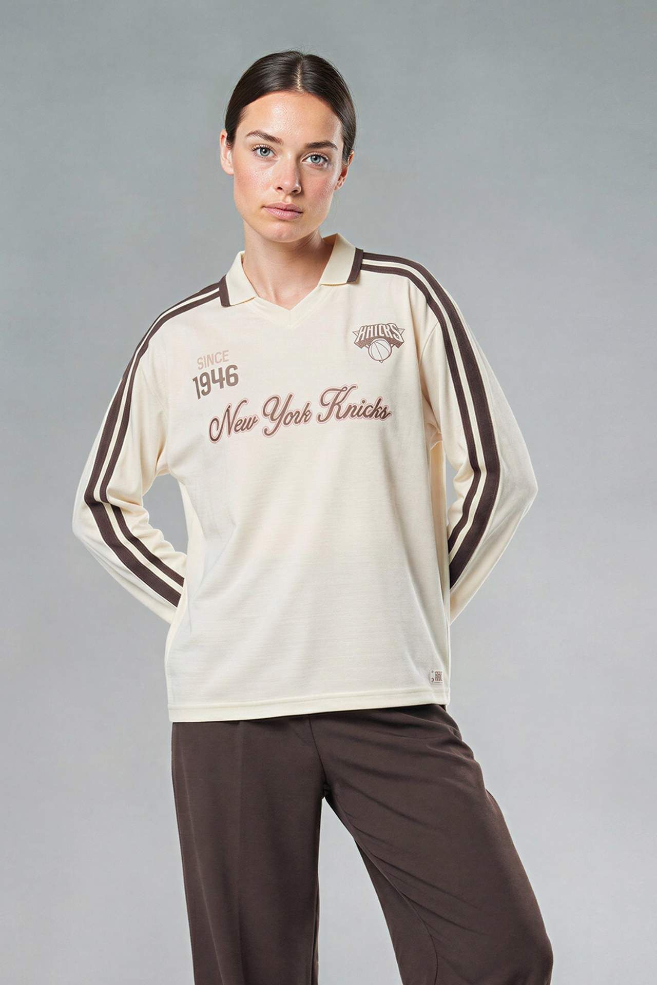 DeFacto NBA New York Knıcks Oversıze Polo Yaka Tül Uzun Kollu Polo Tişört