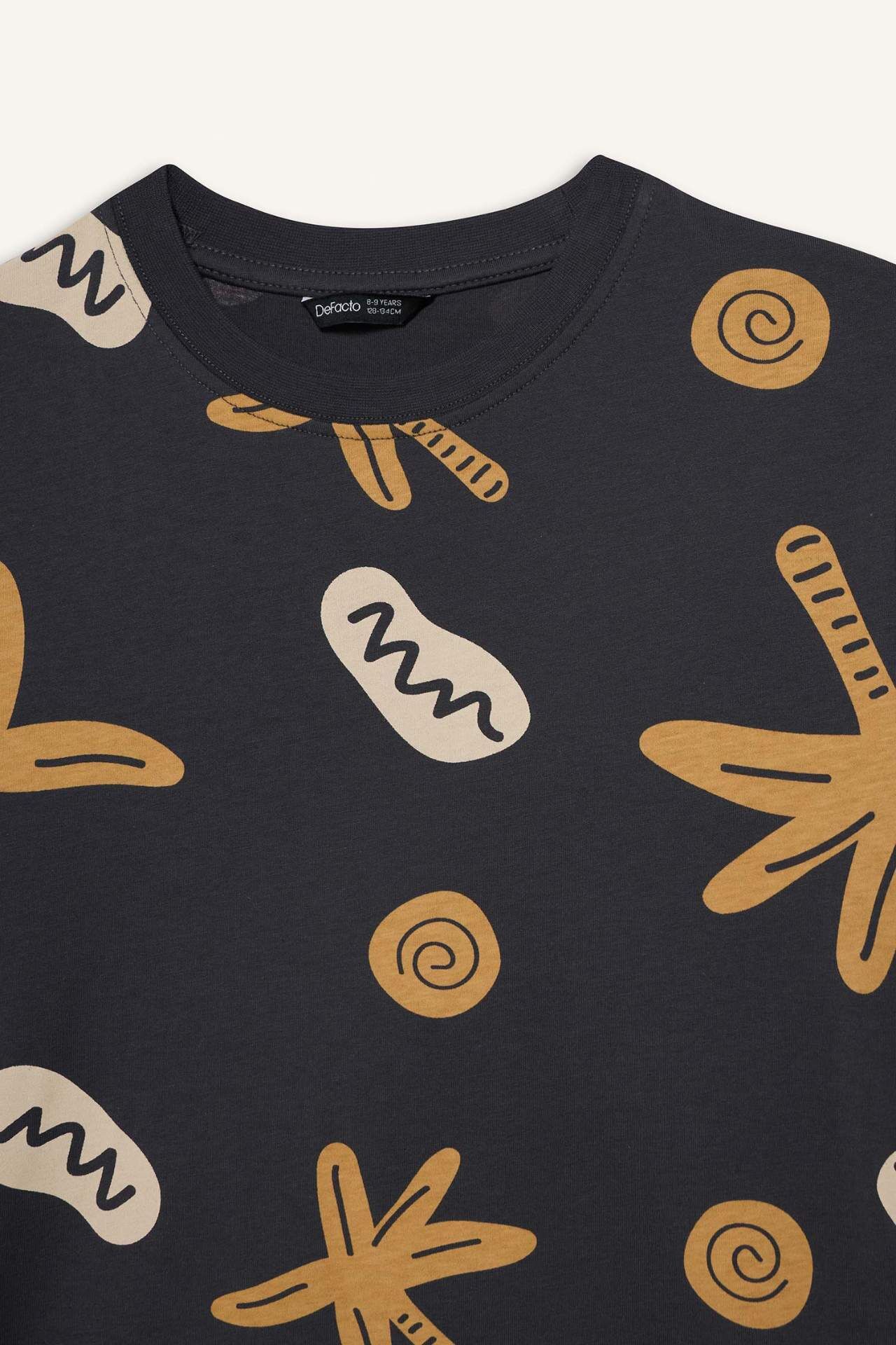 New Regular Fıt Bisiklet Yaka Floral Kısa Kollu Tişört Erkek Çocuk