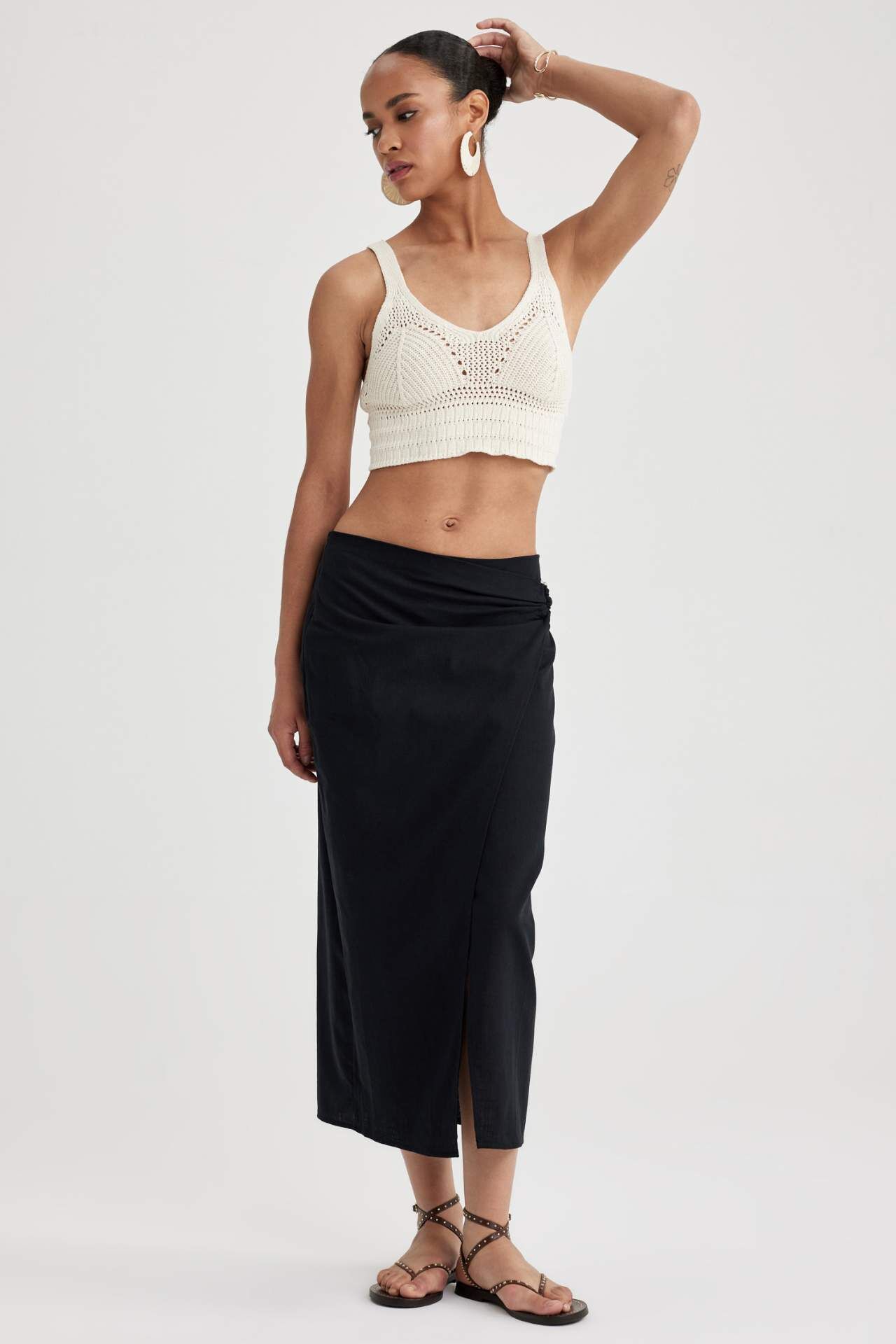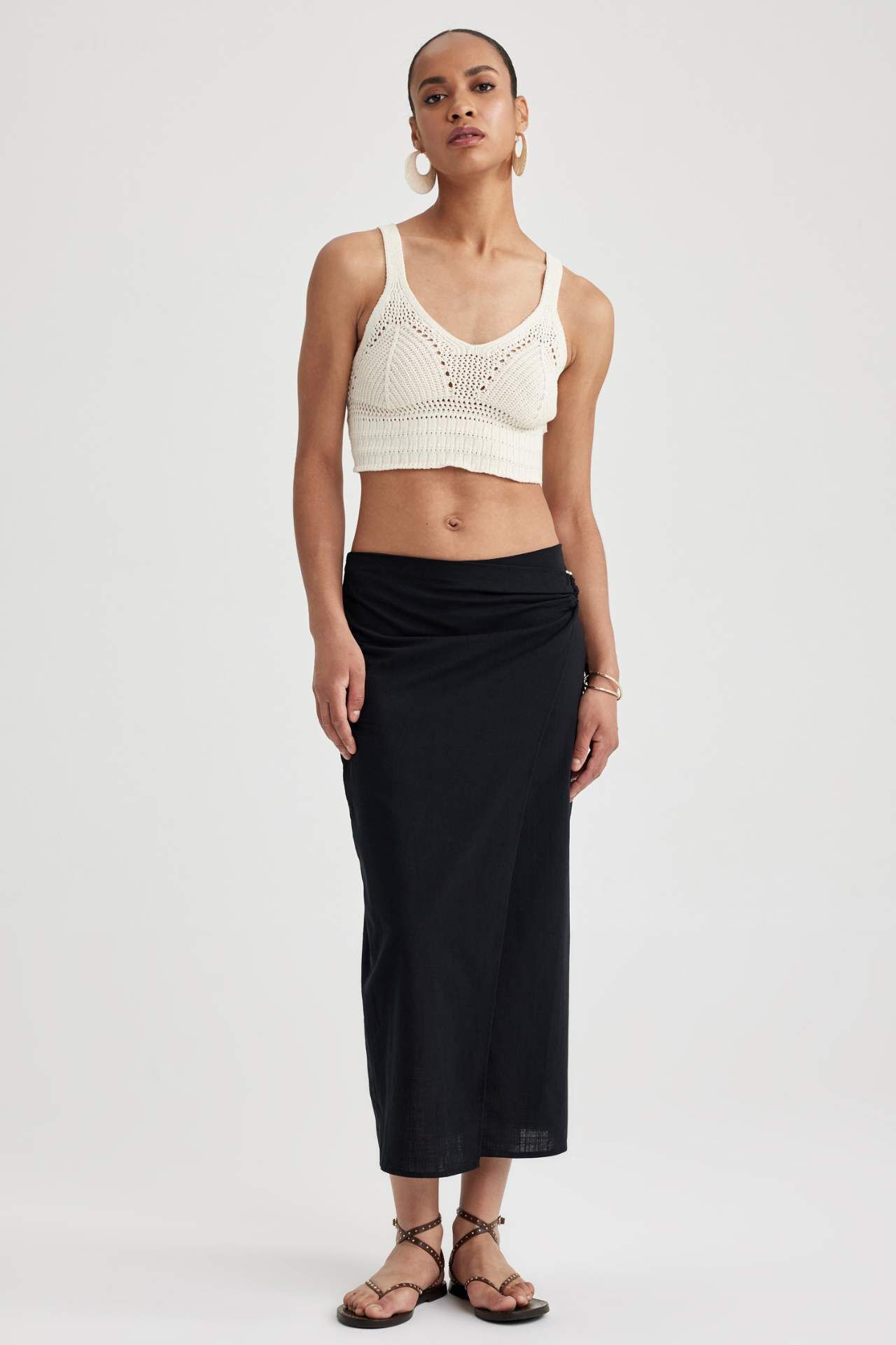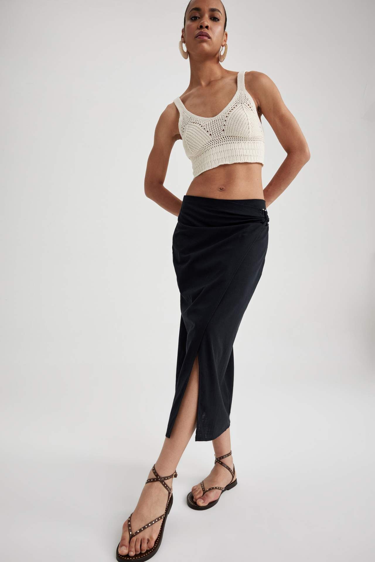 Woman Woven Skirt Pamuk 100% Manken Bedeni: Göğüs: 84 Boy: 1,8 Basen: 91 Bel: 63